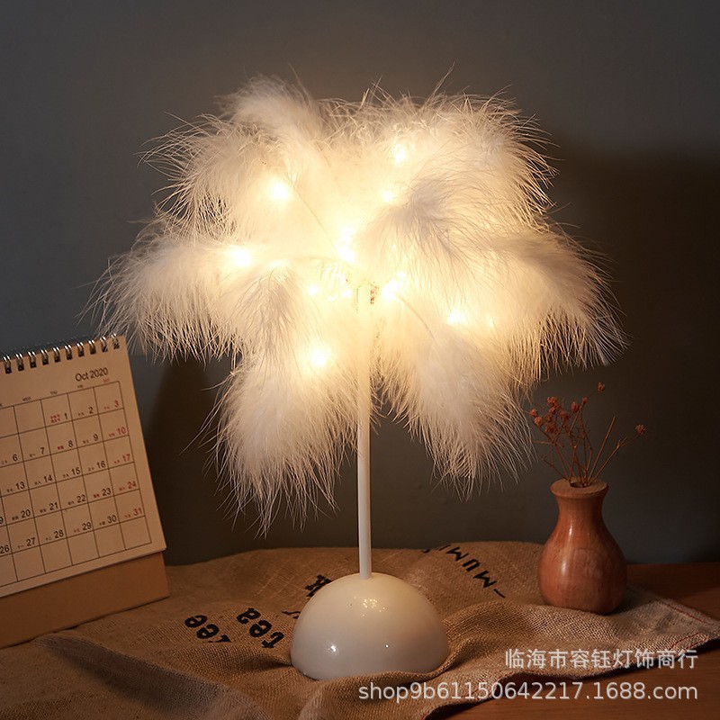 깃털 테이블 램프 야간 조명 소녀의 심장 침실 기숙사 창조적 인 분위기 깃털 램프 그물 연예인 방 장식 램프 문자열