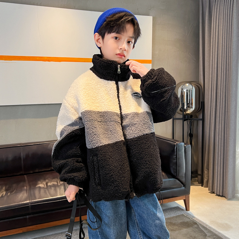 남아용 가을 겨울 두꺼운 코트 2025 신상 아동용 겨울 양털 스웨터 중대형 아동용 멋지고 트렌디한 스타일