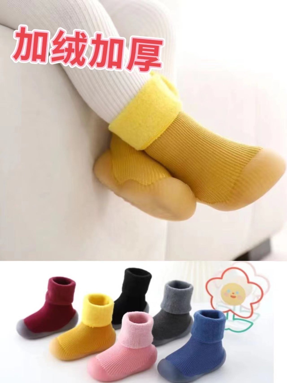 겨울 아기 기모 바닥 양말 신발 아기 실내 미끄럼 방지 부드러운 바닥 유아 신발 어린이 가을과 겨울 따뜻한 양말 신발