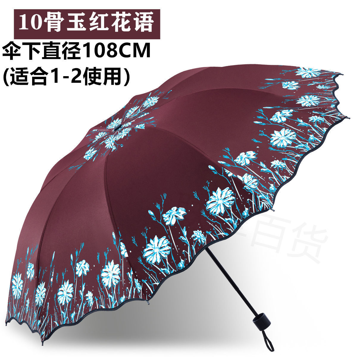 대형 우산, 2인용 우산, 강화 접이식 우산, 튼튼하고 내구성 있는 여성용 블랙 글로시 자외선 차단 양산, 비와 햇빛 모두에 사용 가능한 학생용 우산