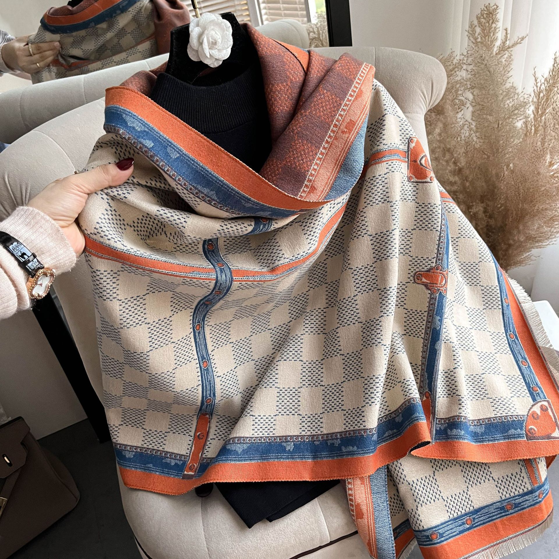 가을과 겨울의 새로운 올 매치 따뜻한 스카프 여성의 이중 사용 캐시미어 체스 판 격자 무늬 양면 칫솔질 두꺼운 긴 스카프
