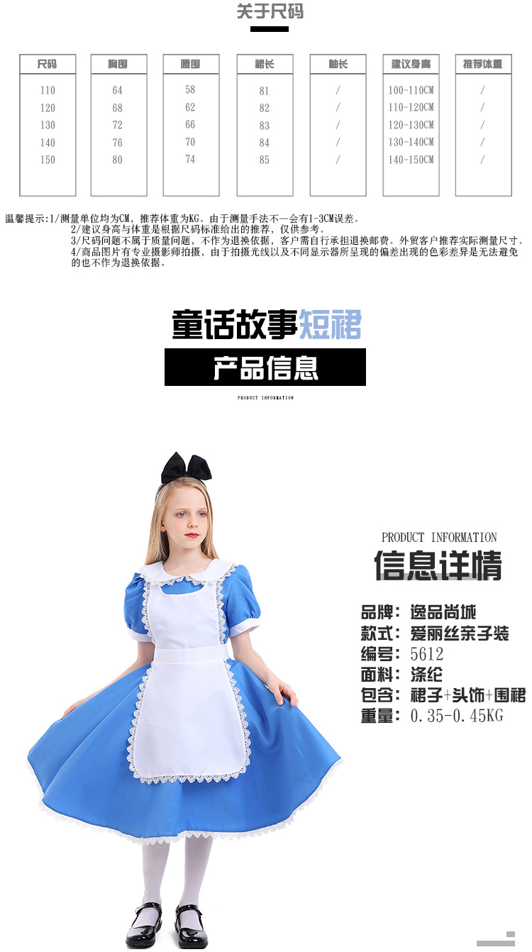 이상한 나라의 대외 무역 스타일 앨리스 블루 목장 가족 옷 코스프레 무대 공연 사진 옷