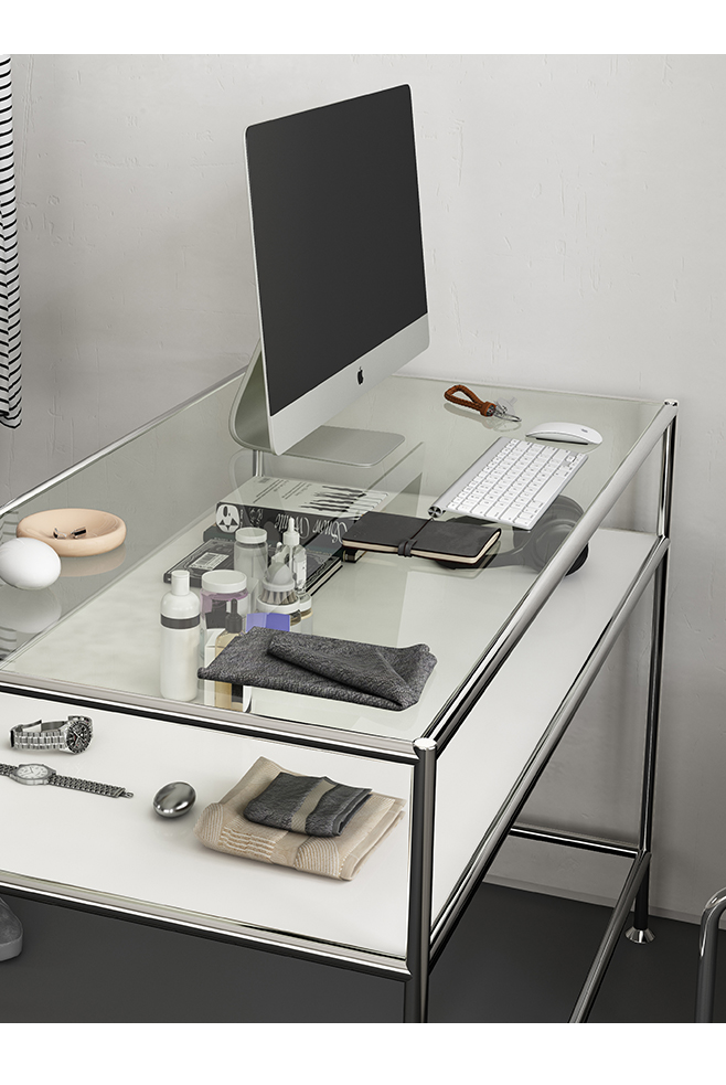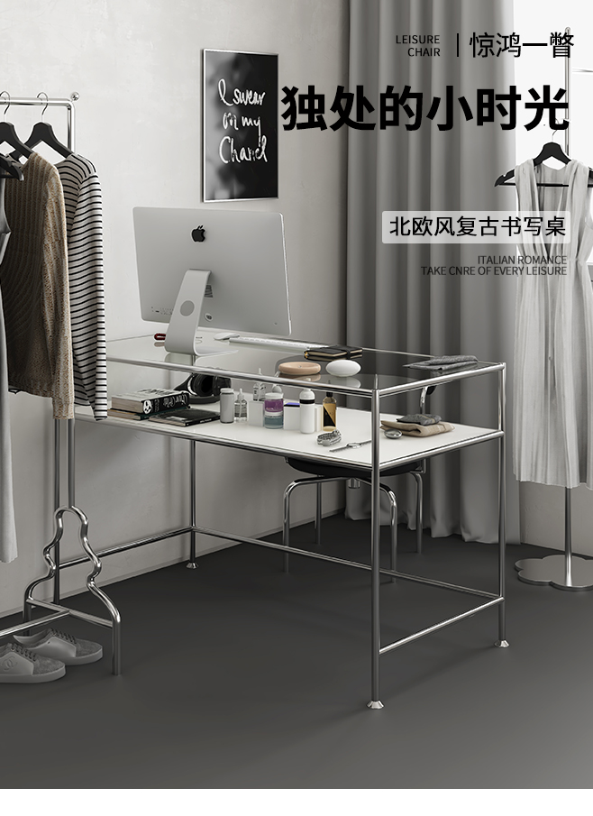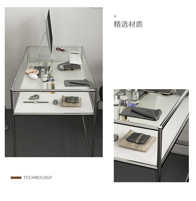 덴마크 디자이너 홈 긴 사무실 작업 유리 책상 매우 간단한 스테인레스 스틸 컴퓨터 디스플레이 의류 매장
