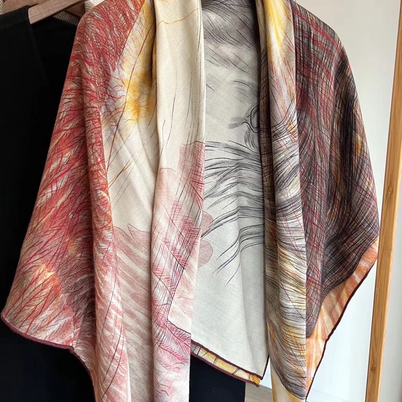 실크 울 스카프 여성용 올 매치 겨울 실크 울 대형 스퀘어 한국 패션 목도리 따뜻한 이중 목적 스카프스토어 가기