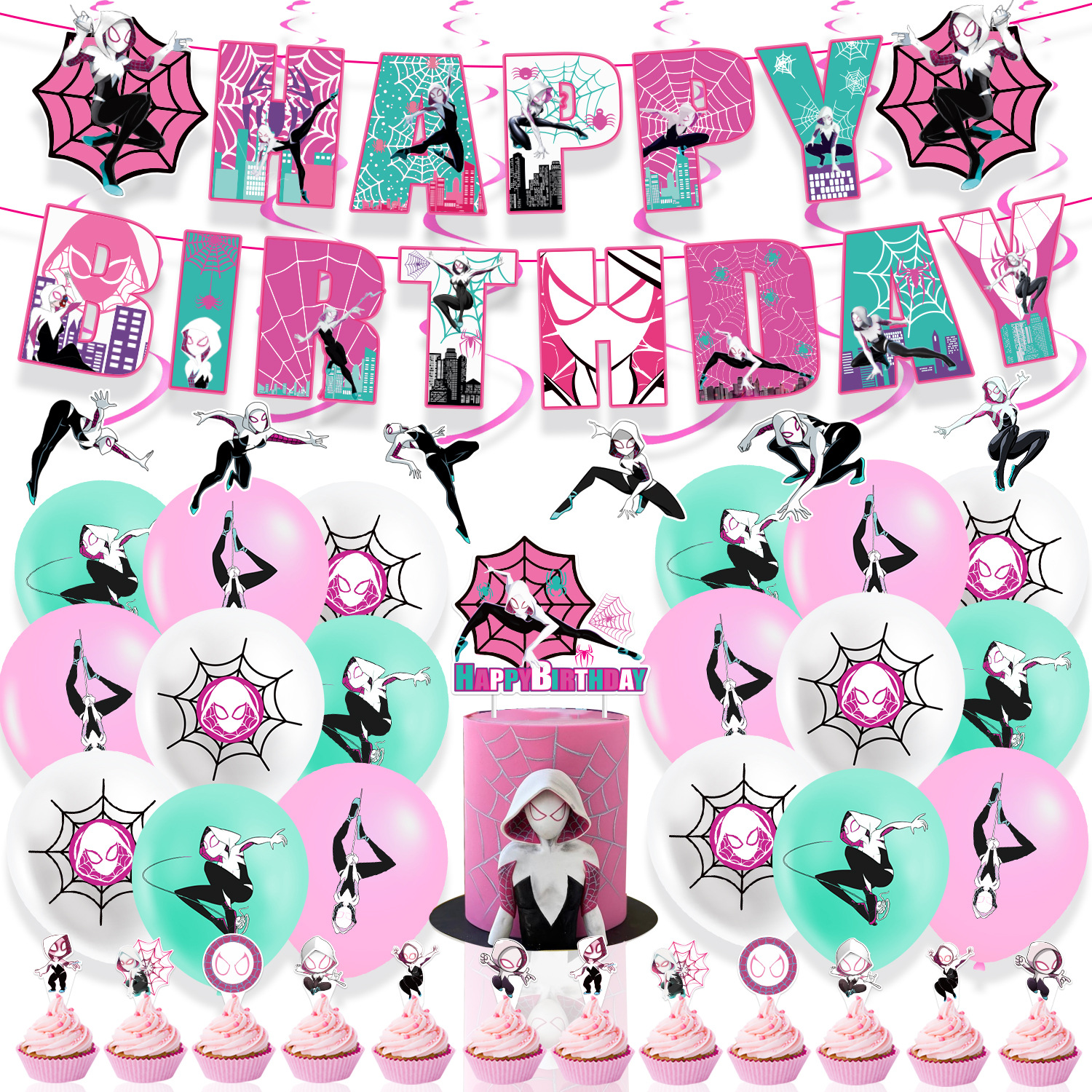产品名称:蜘蛛格温生日派对气球套装