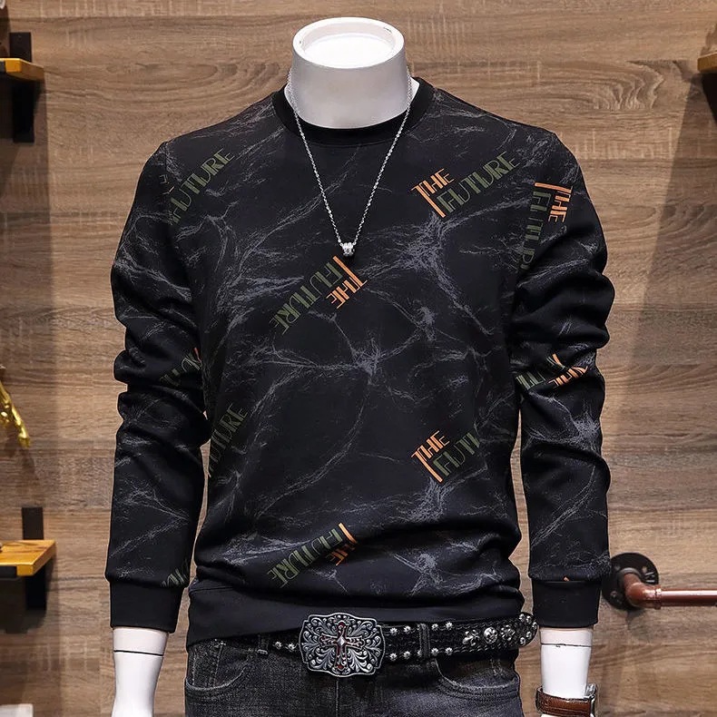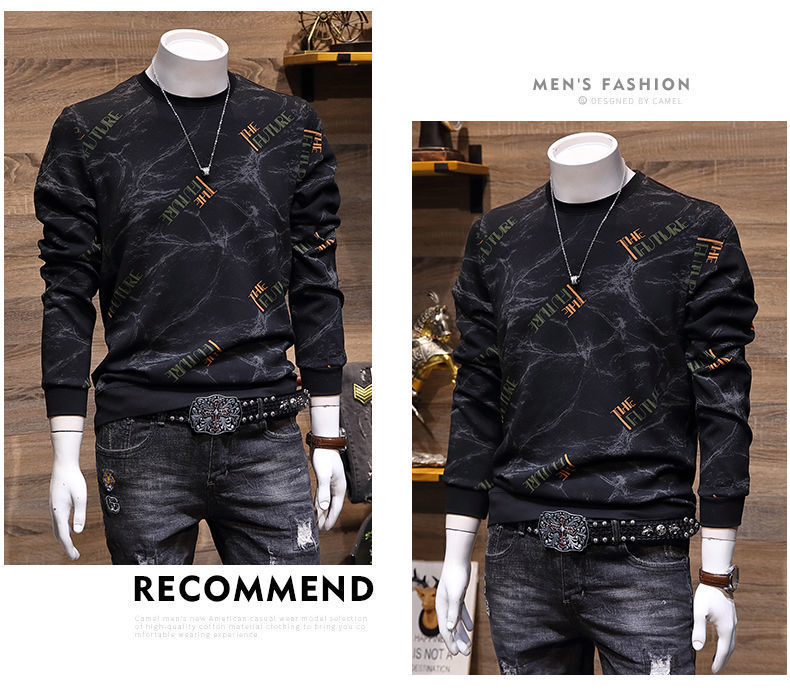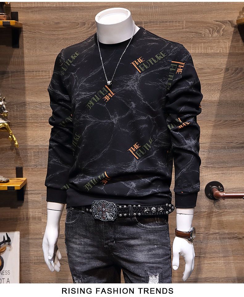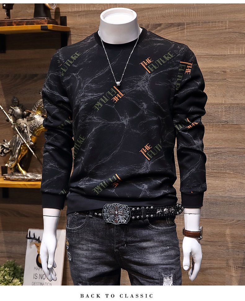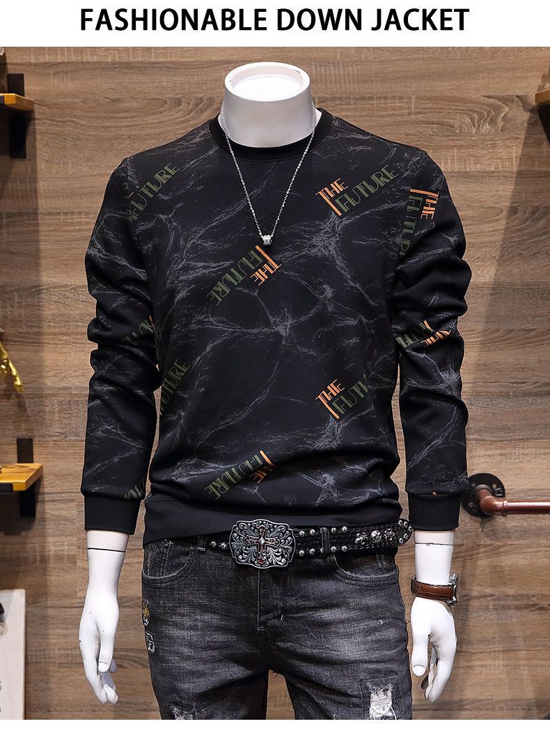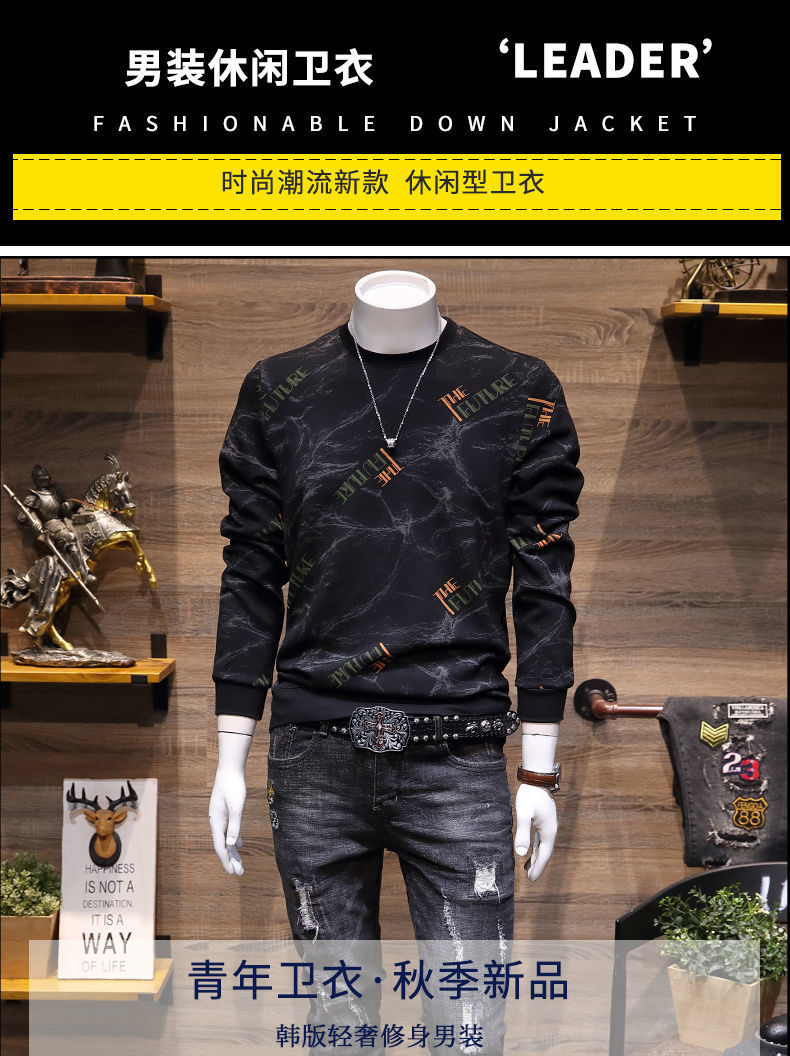 가을 스웨터 남자의 새로운 한국 스타일 유행 슬림 핏 청소년 라운드 넥 풀오버 인쇄 잘 생긴 재킷 남자의 봄과 가을스토어 가기