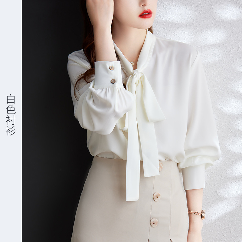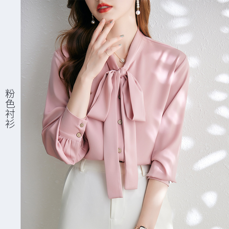 2022 가을 새로운 빨간 셔츠 전문 쉬폰 리본 셔츠 여성 디자인 감각 틈새 긴 소매 기질 셔츠스토어 가기