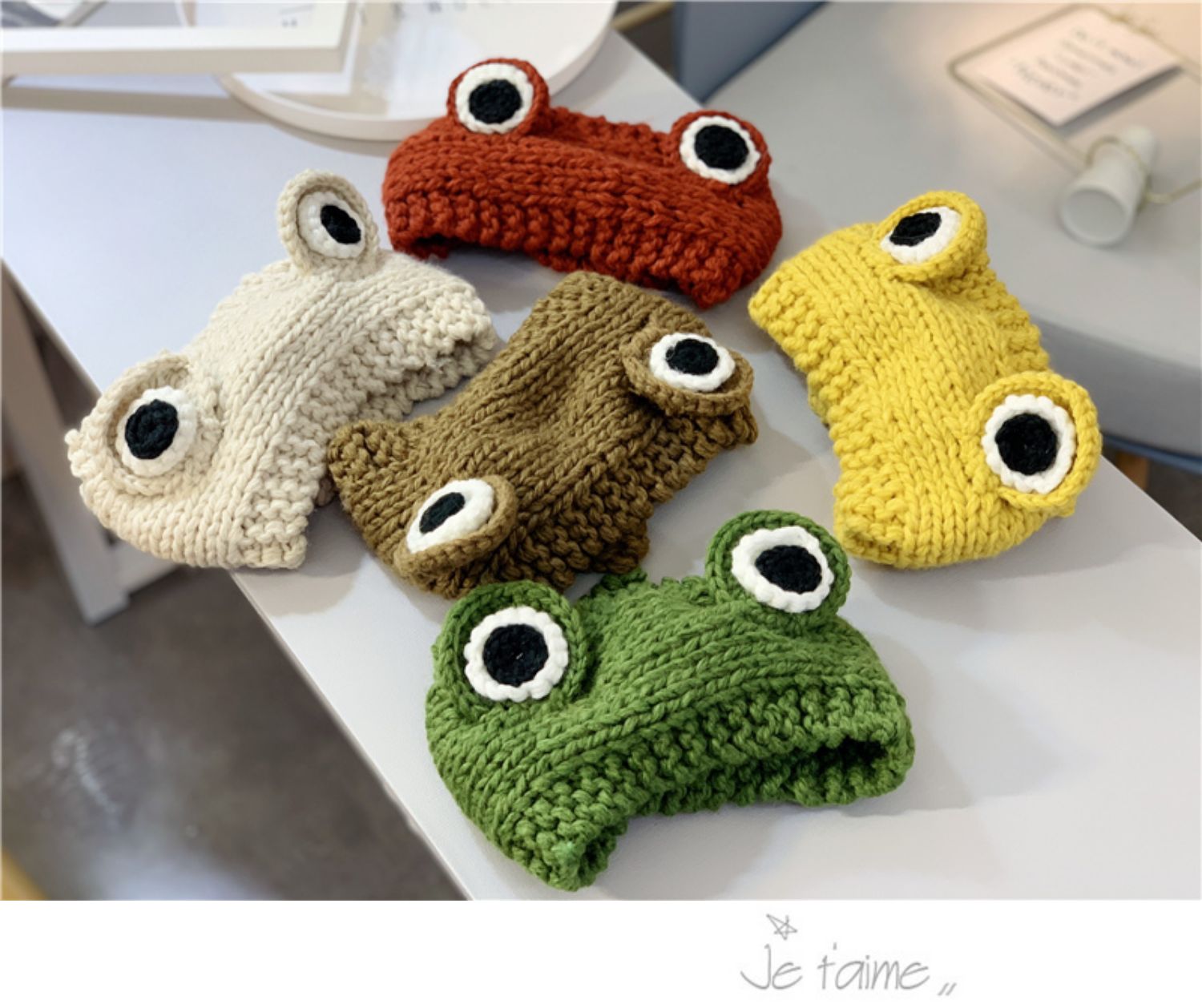 귀여운 달콤한 성인 어린이 만화 개구리 니트 모자 여성용 한국식 모든 매치 오목한 모양