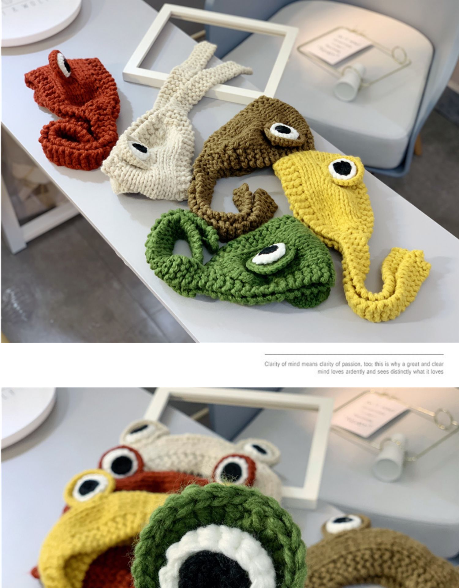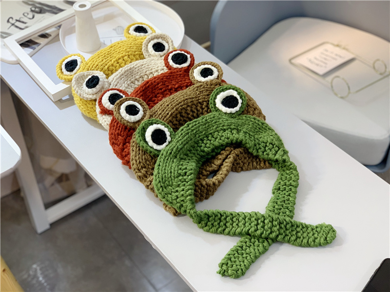 귀여운 달콤한 성인 어린이 만화 개구리 니트 모자 여성용 한국식 모든 매치 오목한 모양스토어 가기