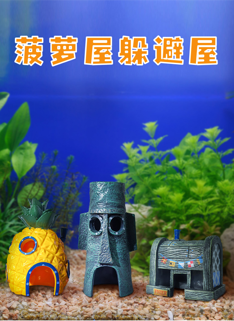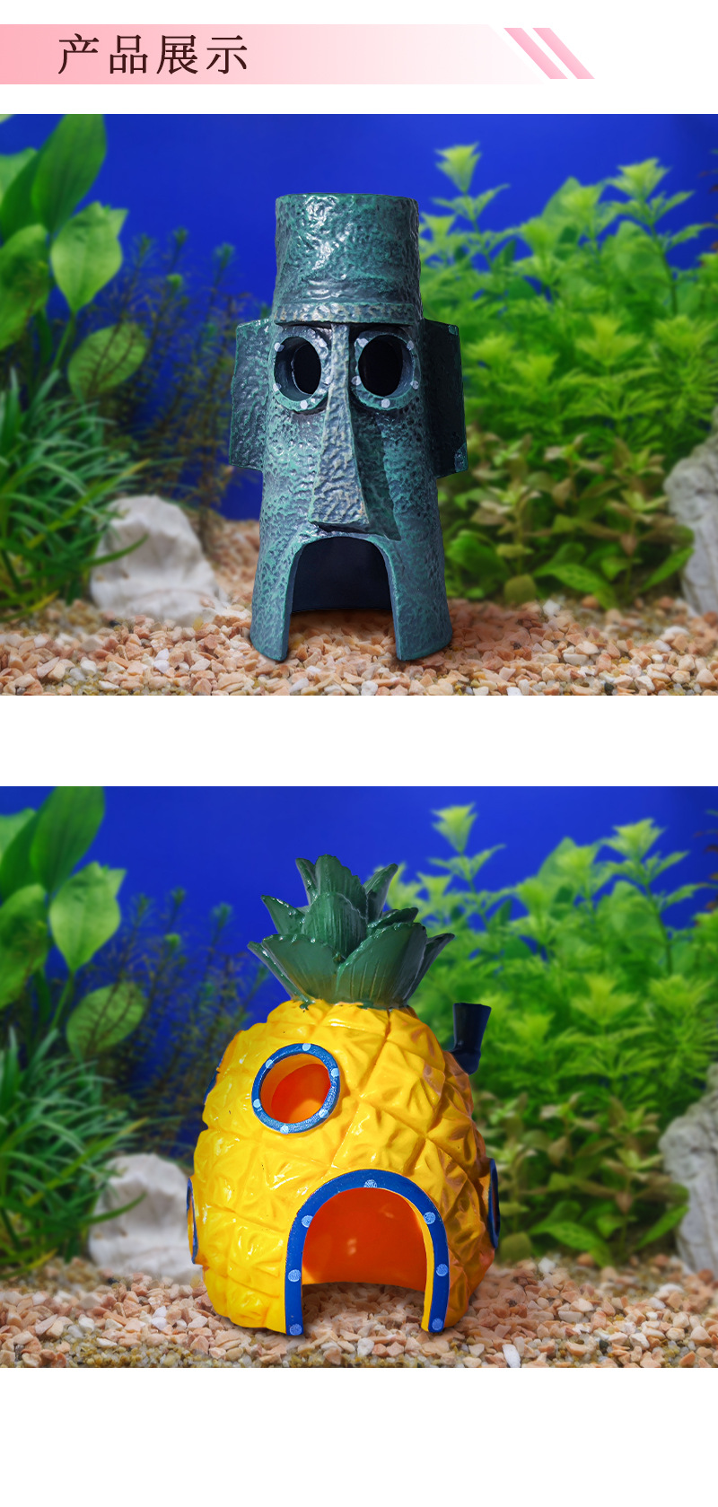 만화 파인애플 하우스 수조 조경 수족관 장식품 PVC 장식 스폰지 밥 스파이크 오징어 크랩 보스의 집스토어 가기