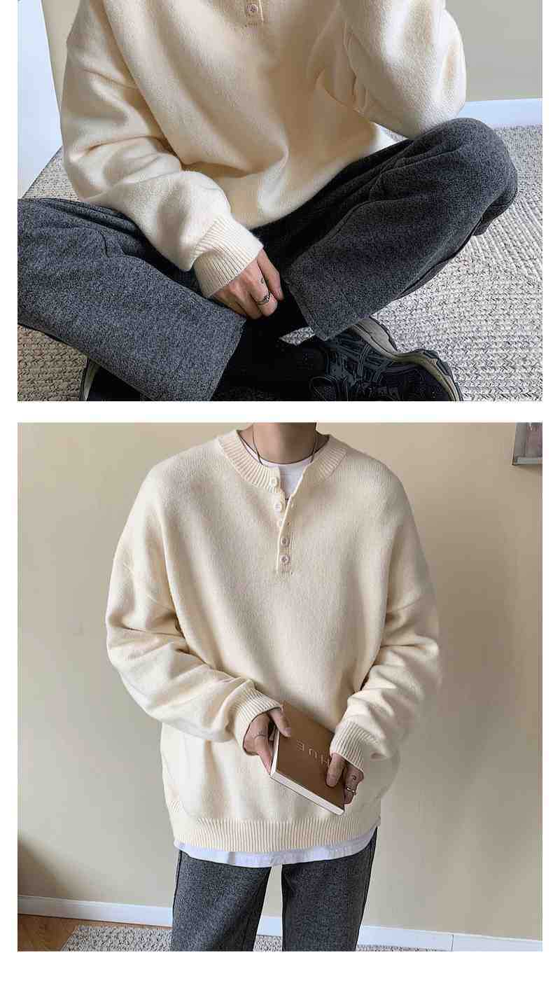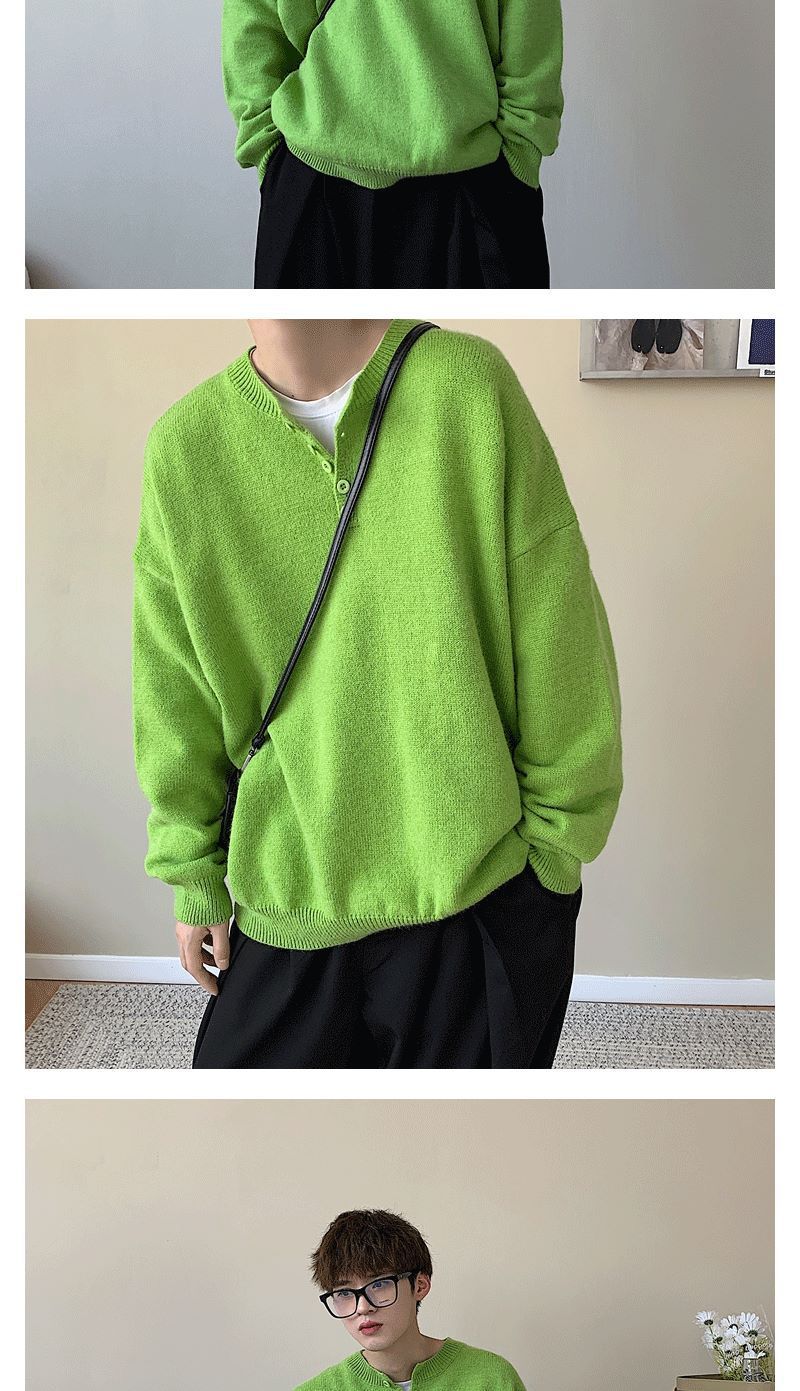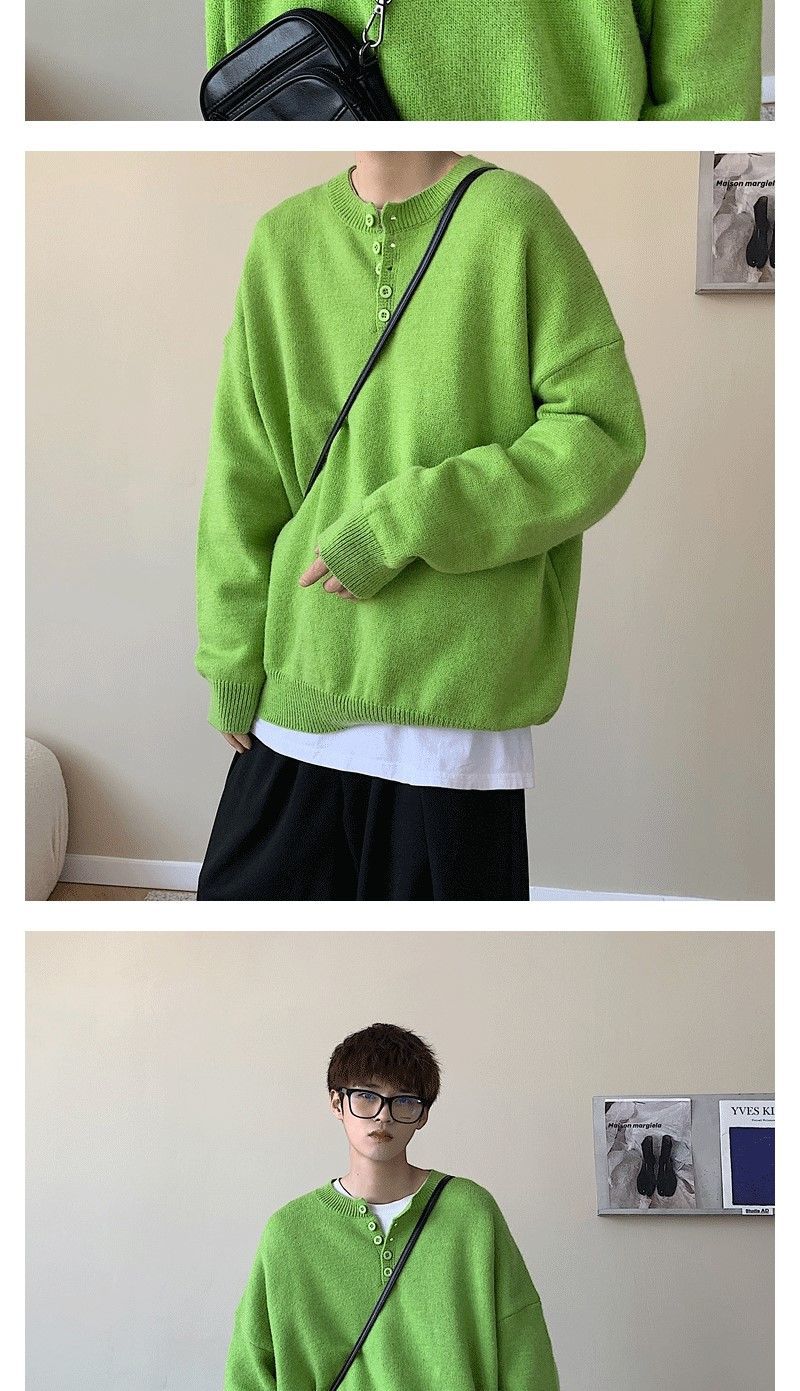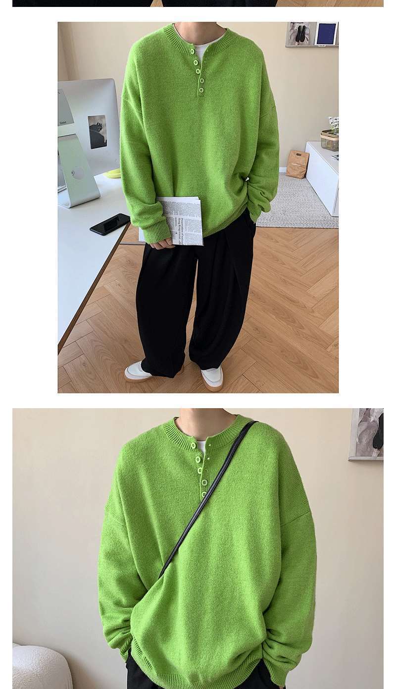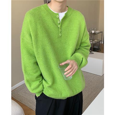 2022 겨울 새로운 솔리드 컬러 라운드넥 풀오버 그린 스웨터 남성용 한국식 올매치 루즈한 캐주얼 니트 베이스 셔츠