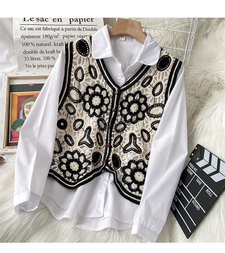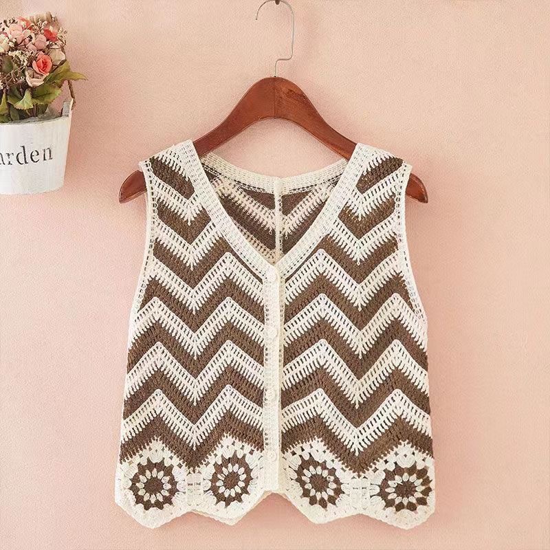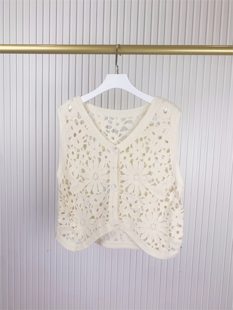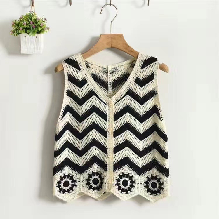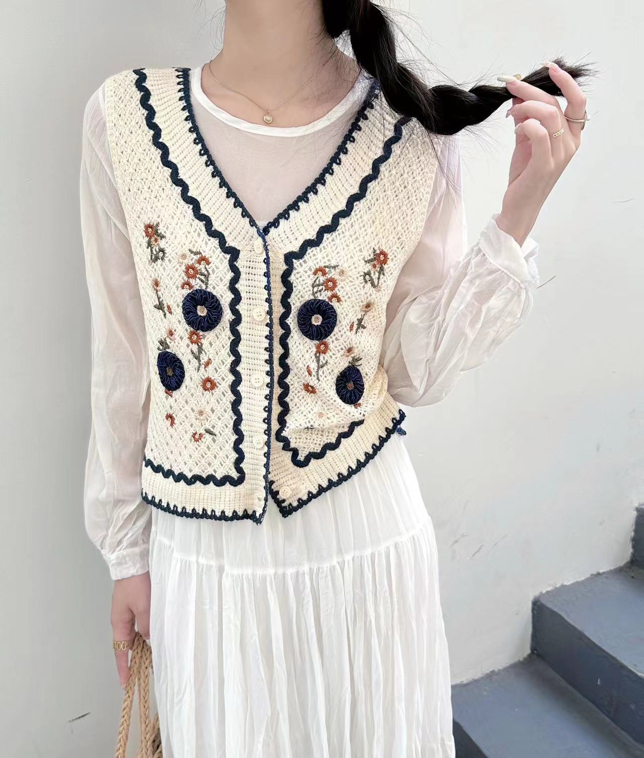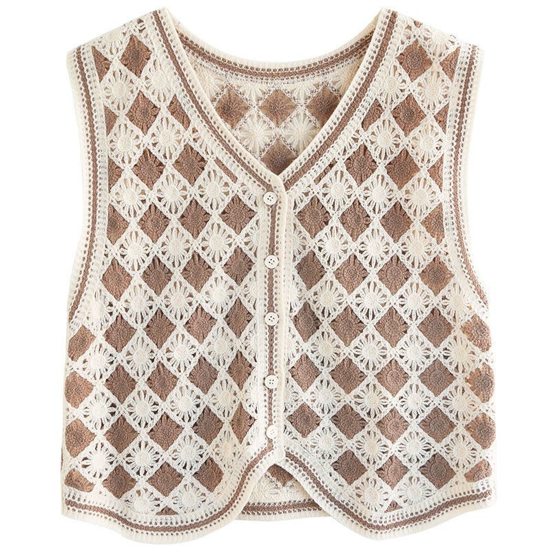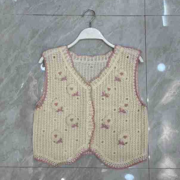 에스닉 스타일 자수 조끼 가디건 V 넥 중공 민소매 자수 짧은 조끼 여성 탑