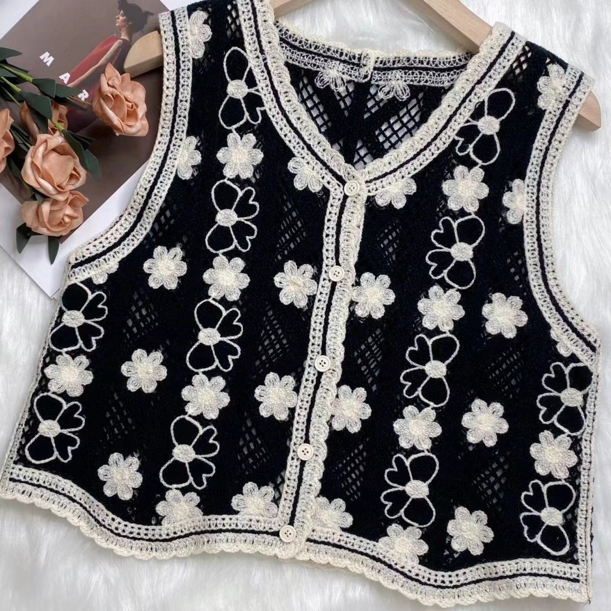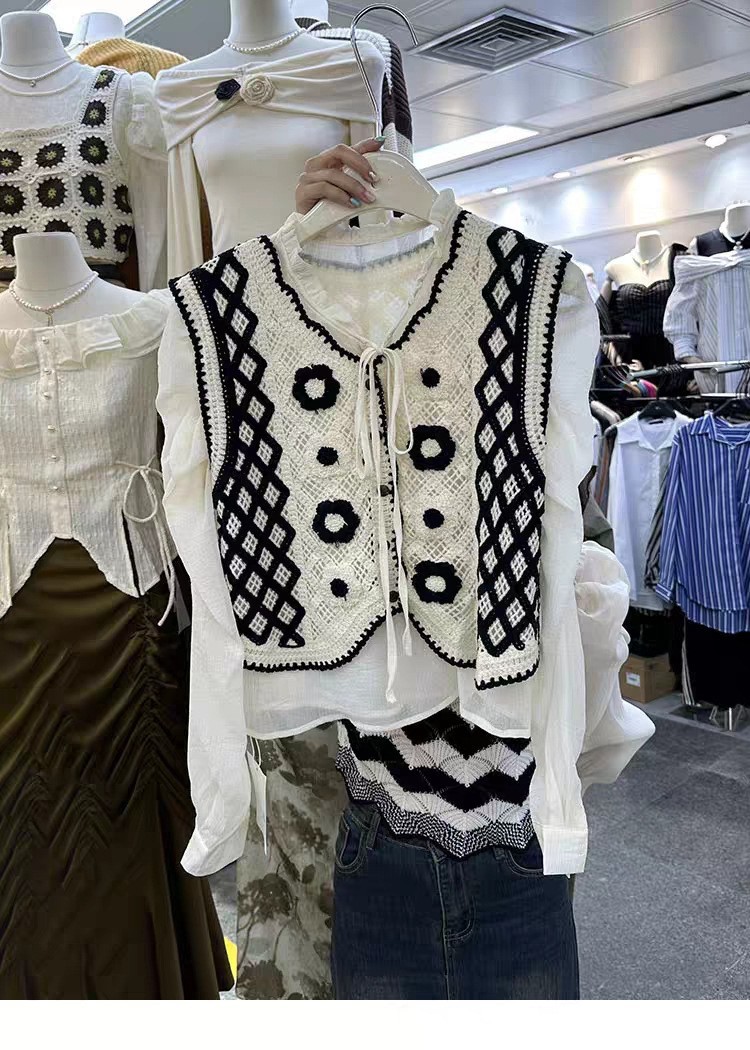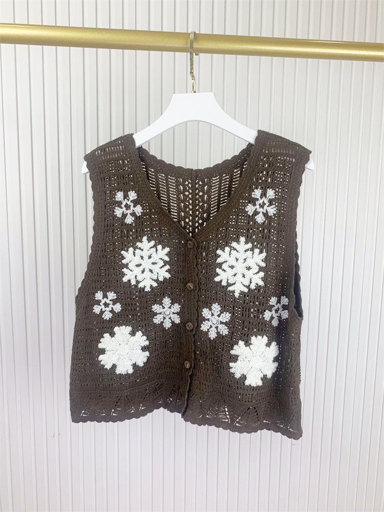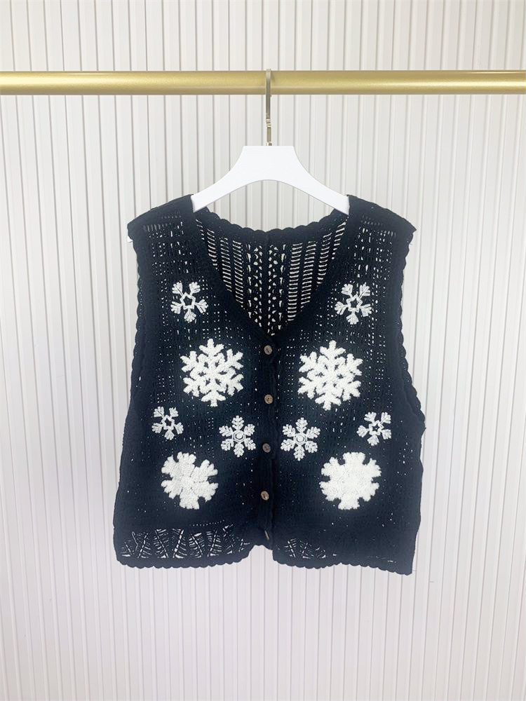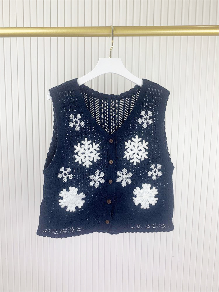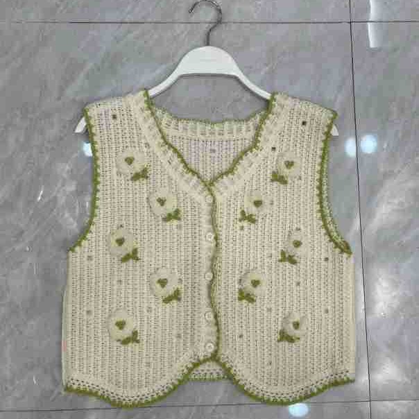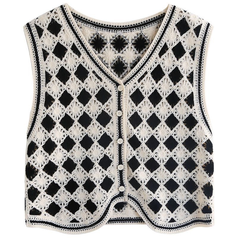 에스닉 스타일 자수 조끼 가디건 V 넥 중공 민소매 자수 짧은 조끼 여성 탑