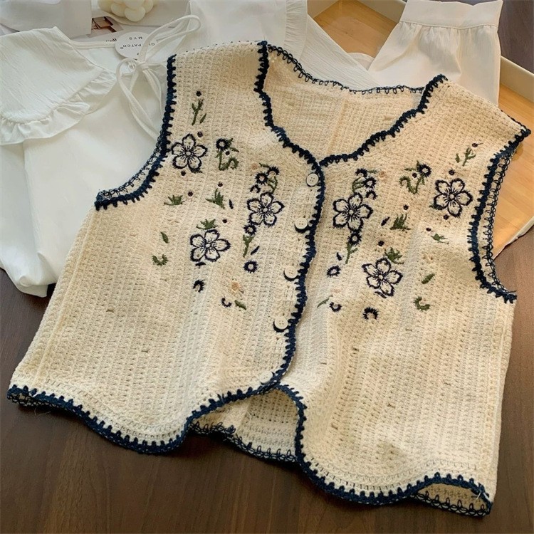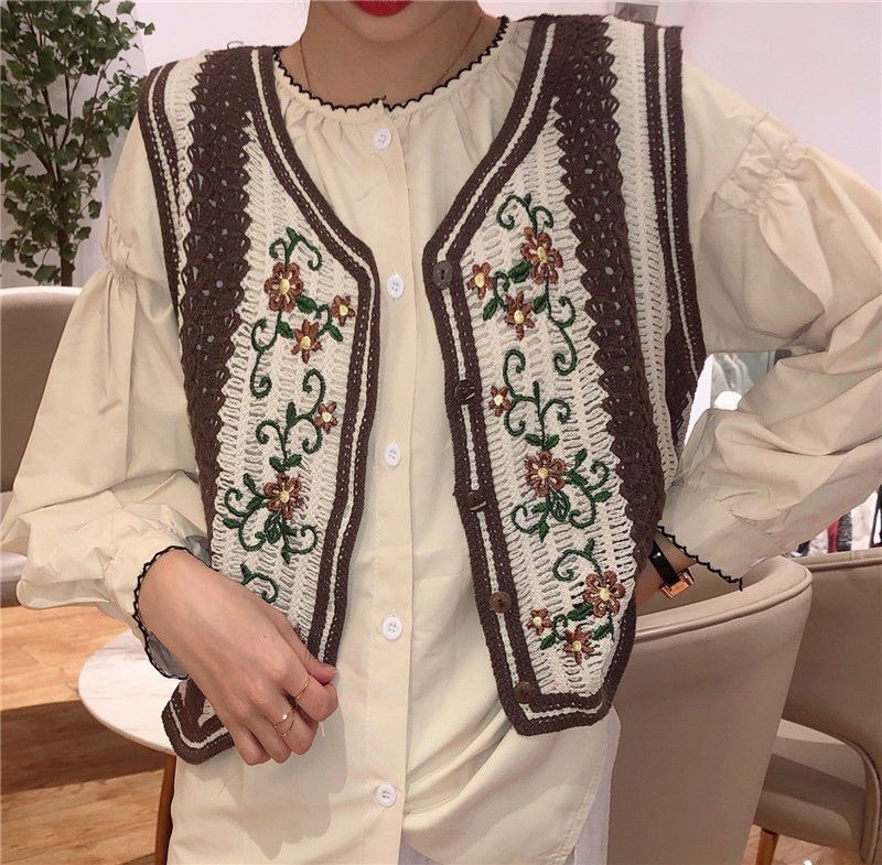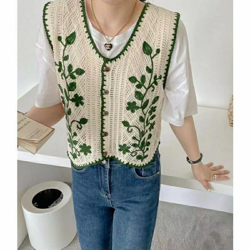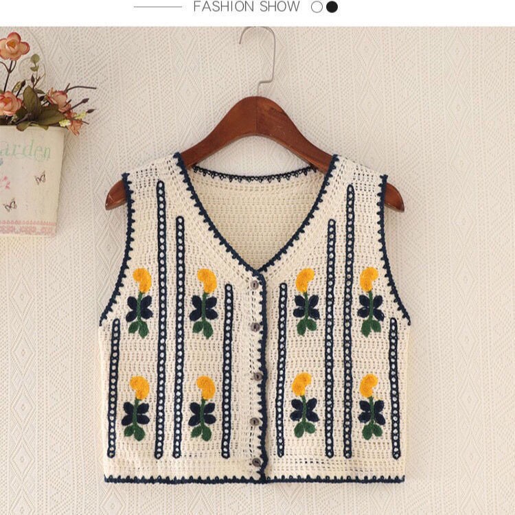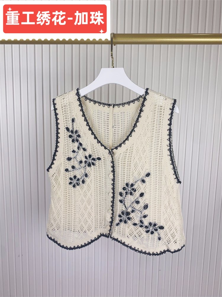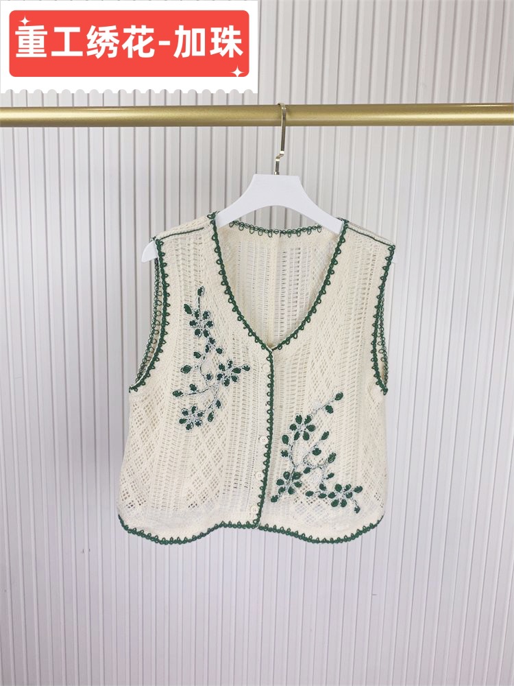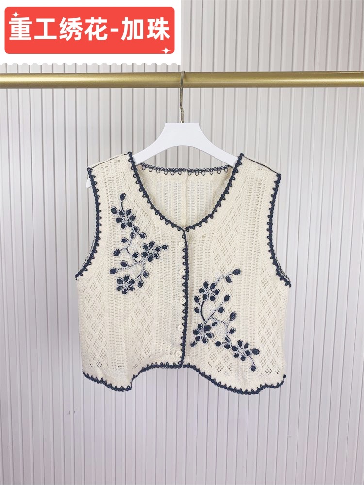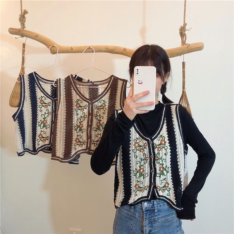 에스닉 스타일 자수 조끼 가디건 V 넥 중공 민소매 자수 짧은 조끼 여성 탑스토어 가기