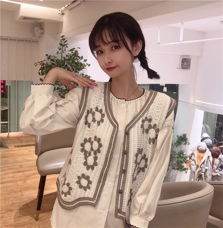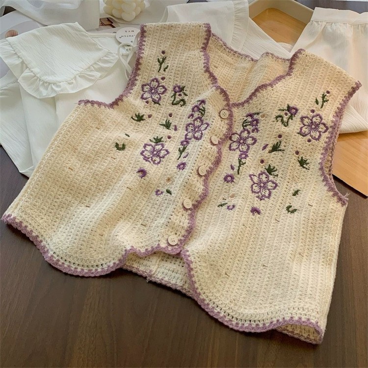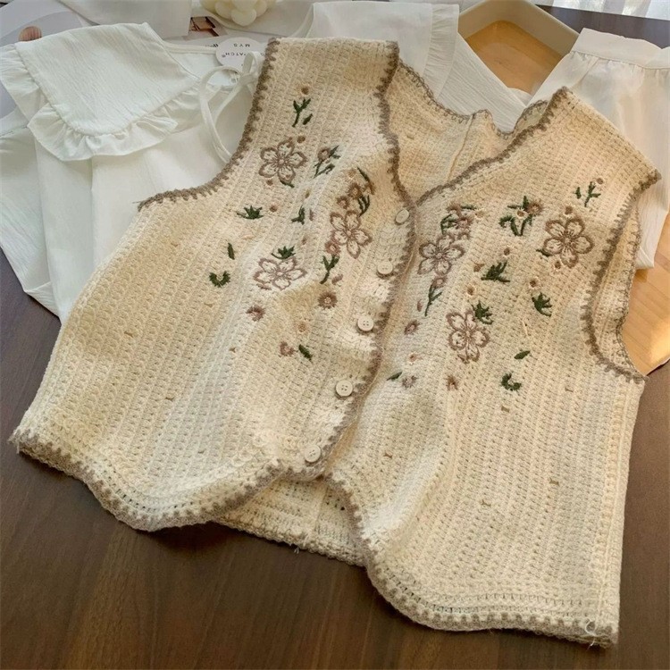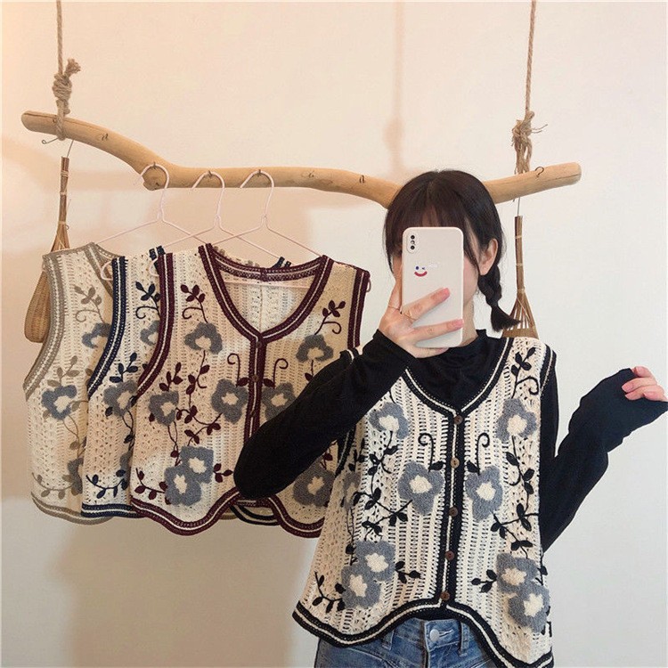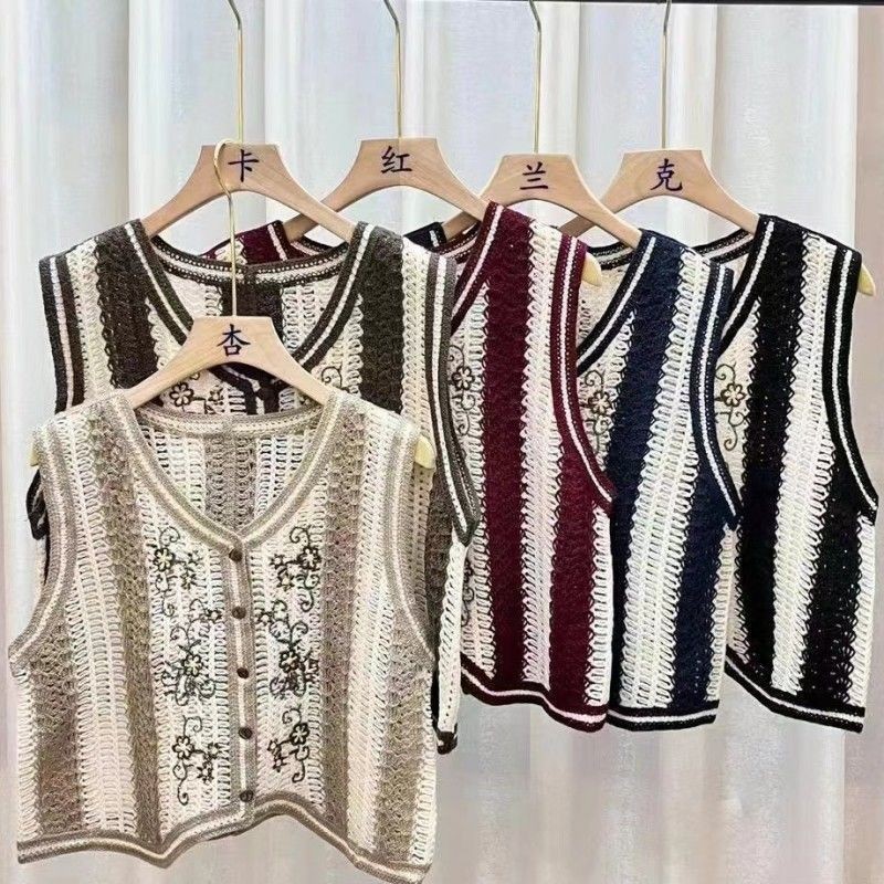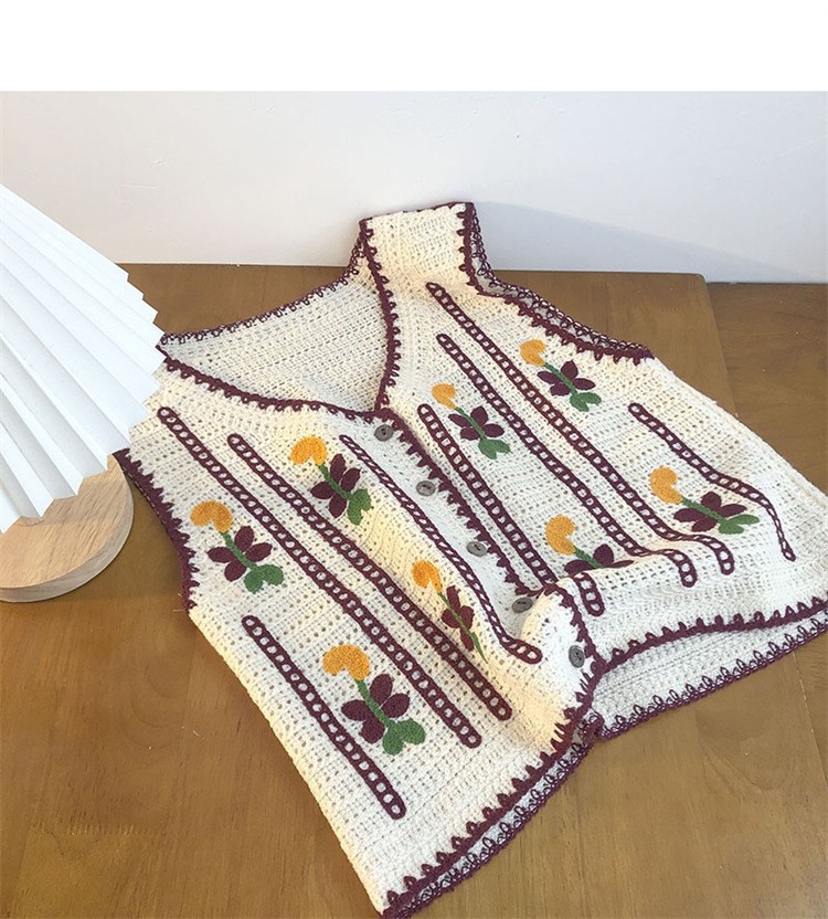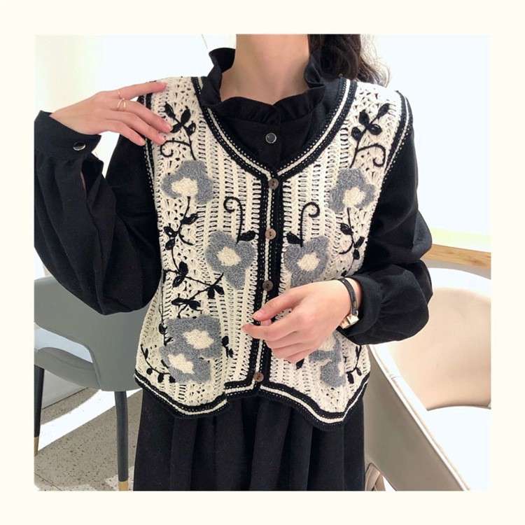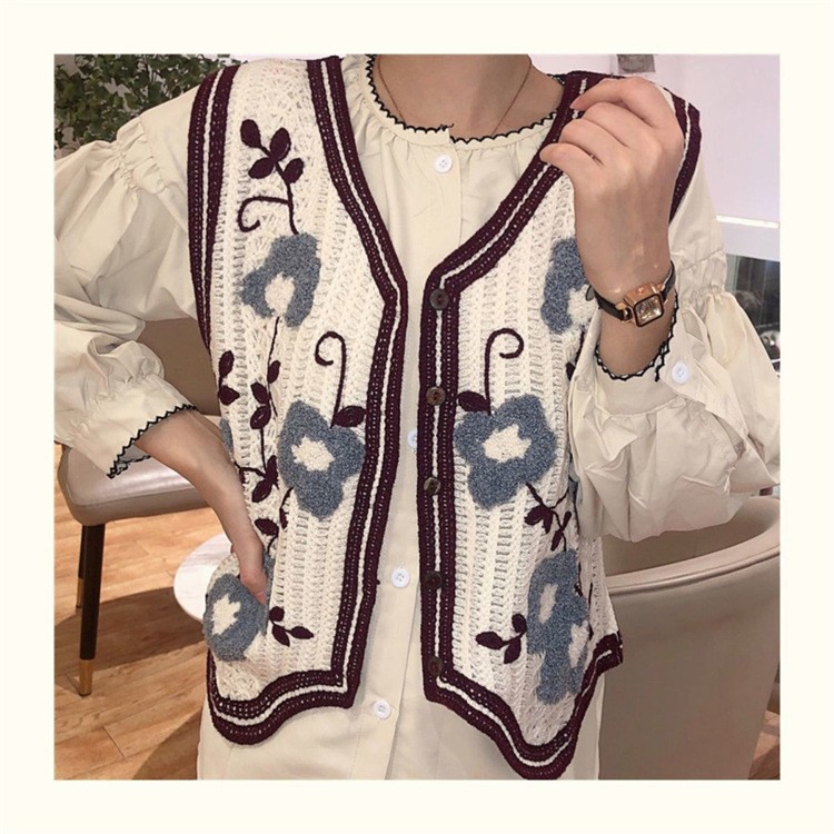 에스닉 스타일 자수 조끼 가디건 V 넥 중공 민소매 자수 짧은 조끼 여성 탑스토어 가기