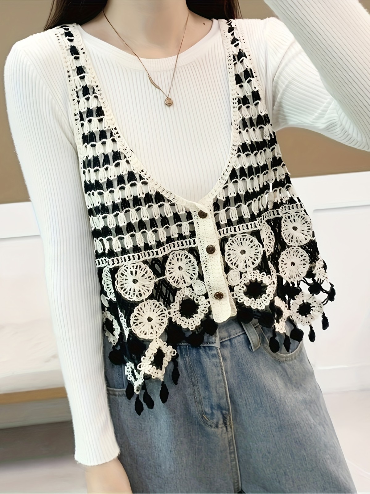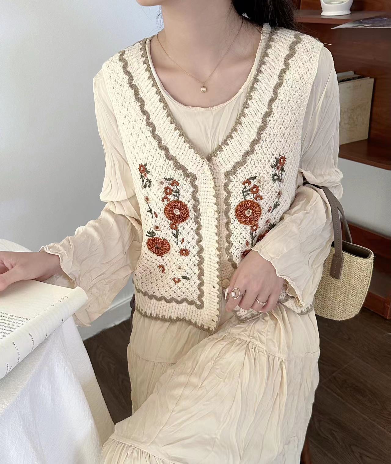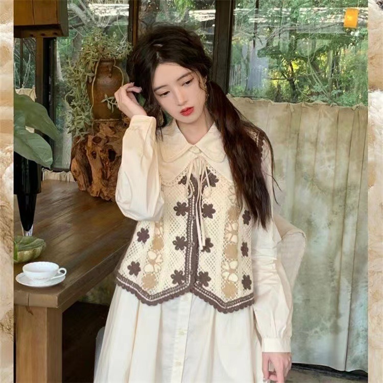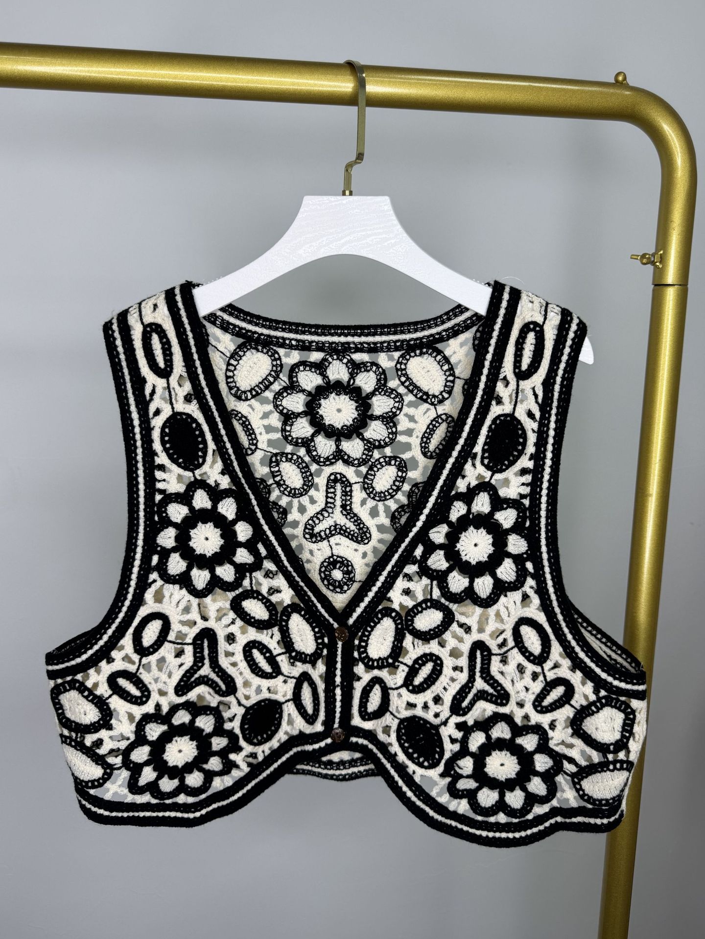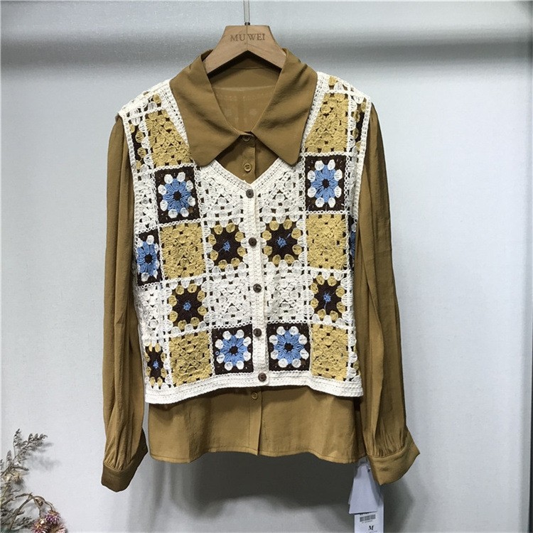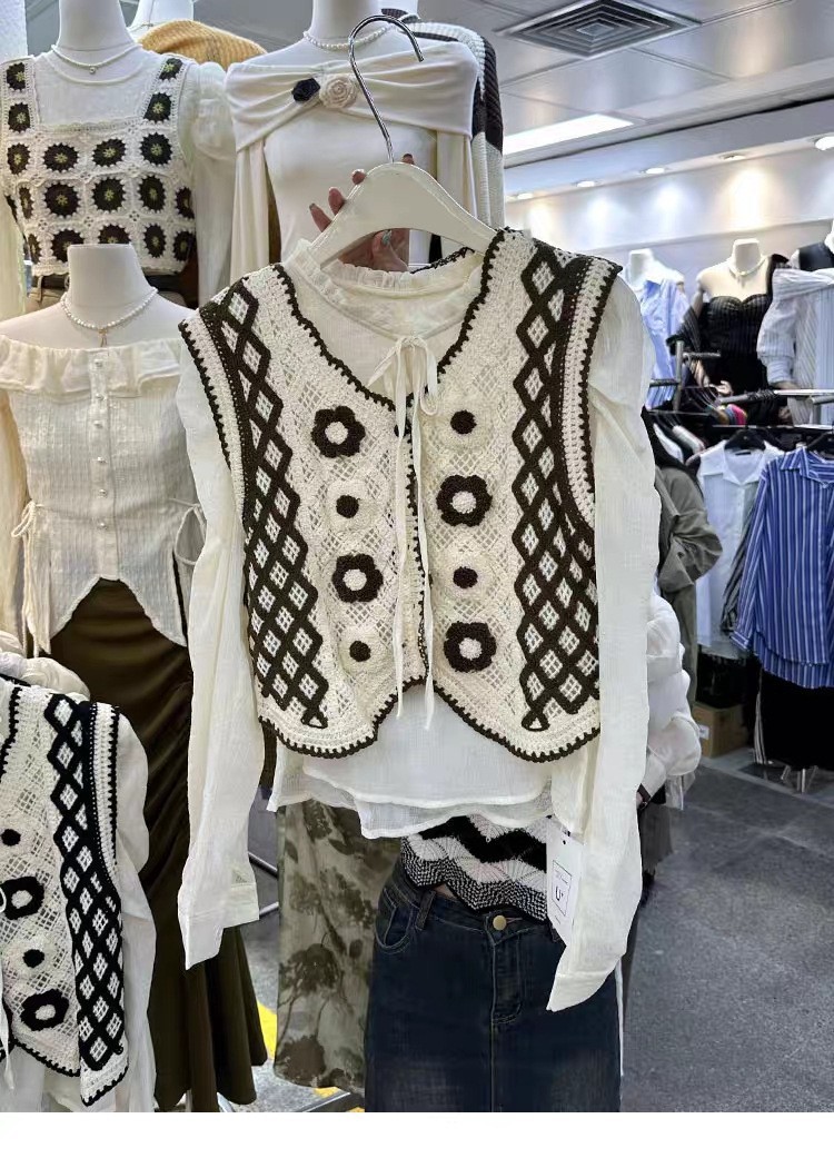 에스닉 스타일 자수 조끼 가디건 V 넥 중공 민소매 자수 짧은 조끼 여성 탑스토어 가기