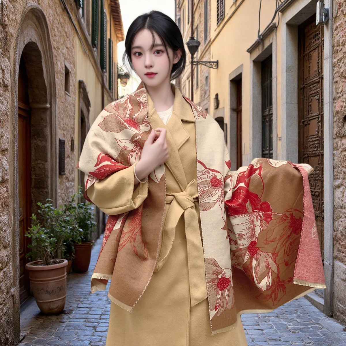2025 핫 세일 롱 스카프 여성용 겨울 스카프 외투 하이 엔드 모방 캐시미어 여성용 니트 따뜻한스토어 가기