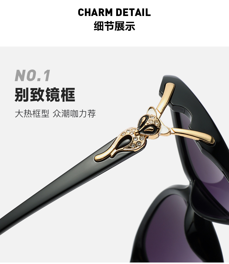 새로운 스타일 관대 한 패션 선글라스 선글라스 여성용 색상 변경 편광판 다이아몬드 야외 운전 안경과 유행 여우 머리스토어 가기