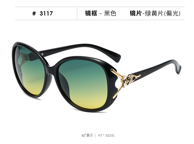새로운 스타일 관대 한 패션 선글라스 선글라스 여성용 색상 변경 편광판 다이아몬드 야외 운전 안경과 유행 여우 머리