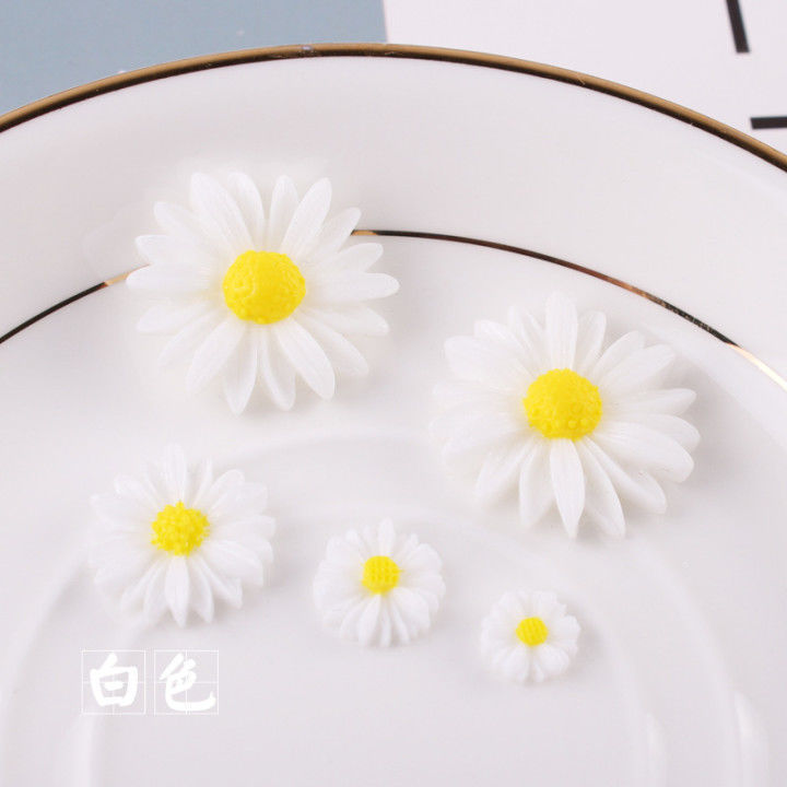 신선한 수지 작은 데이지 흰색 꽃 액세서리 패치 DIY 액세서리 네일 아트 어린이 머리핀 휴대 전화 쉘 붙여 넣기 다이아몬드 장식