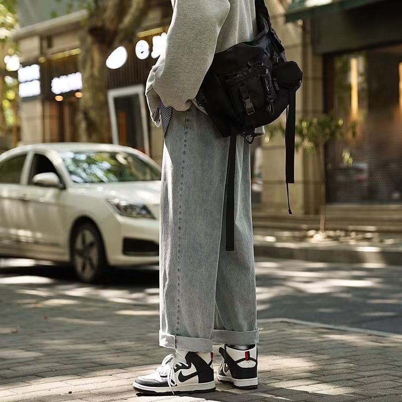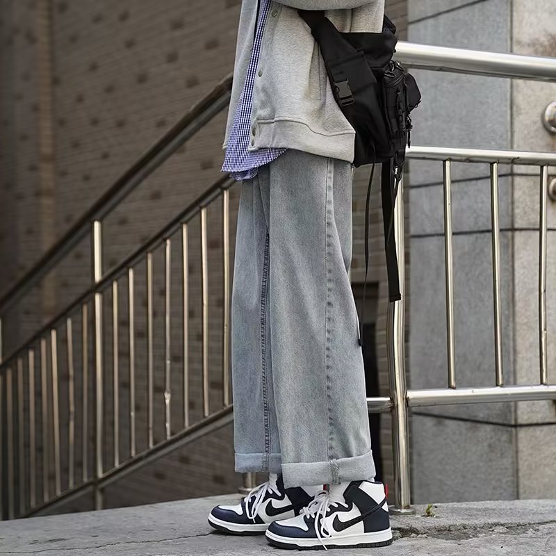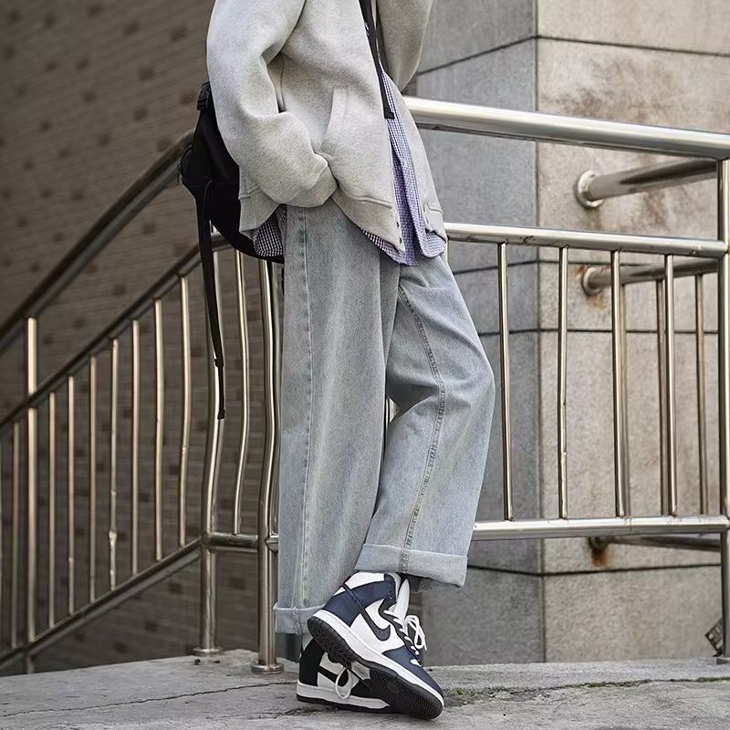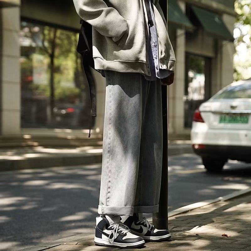 남성용 와이드 레그 청바지, 루즈핏 스트레이트, 봄/가을 스타일, 트렌디 브랜드, 하이 스트리트, 아메리칸 레트로, 캐주얼, 2024 신상 바지스토어 가기