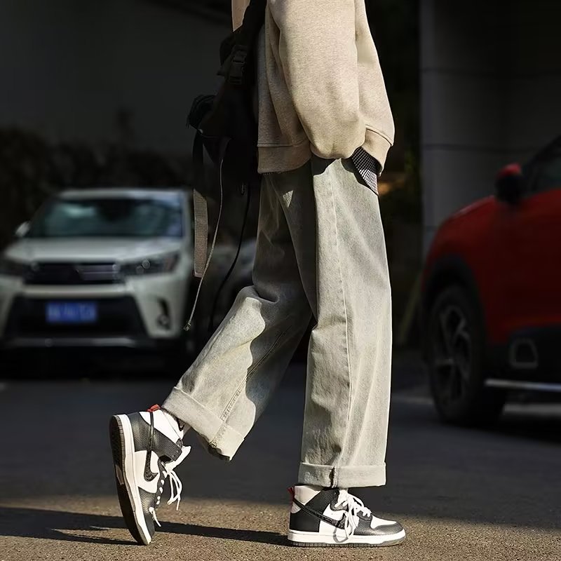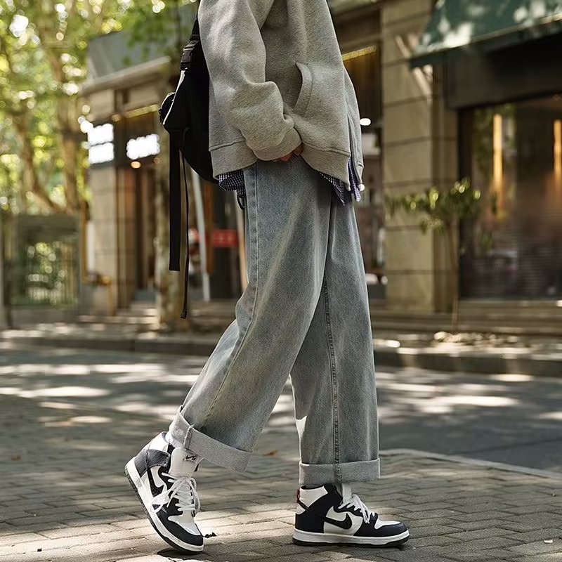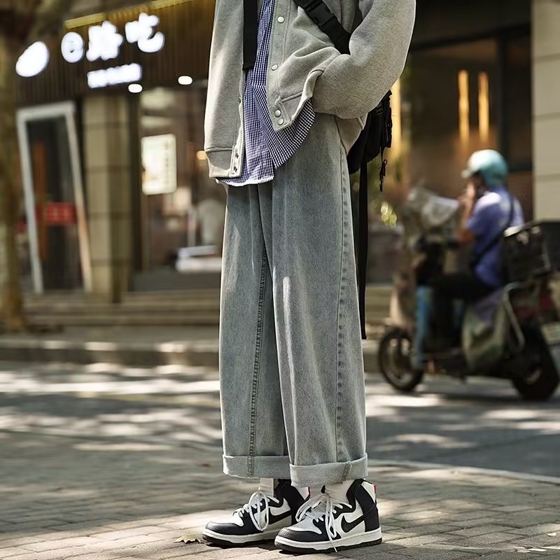 와이드 레그 진 남성용 느슨한 스트레이트 봄과 가을 패션 브랜드 하이 스트리트 아메리칸 스타일 레트로 캐주얼 2022 새 바지스토어 가기