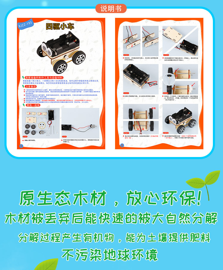 젊은 창조적 인 수제 퍼즐 조립 기술 소규모 생산 DIY 4 륜 구동 자동차 학생 흥미로운 실험 재료 패키지스토어 가기