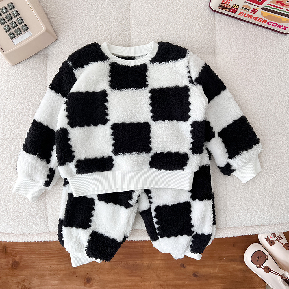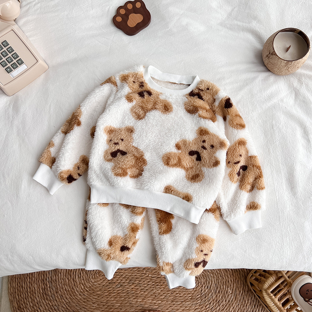 가을과 겨울 아기 소년과 소녀 분할 세트 외국 스타일 기모 따뜻한 아기 귀여운 슈퍼 귀여운 투피스 어린이 겨울 옷스토어 가기