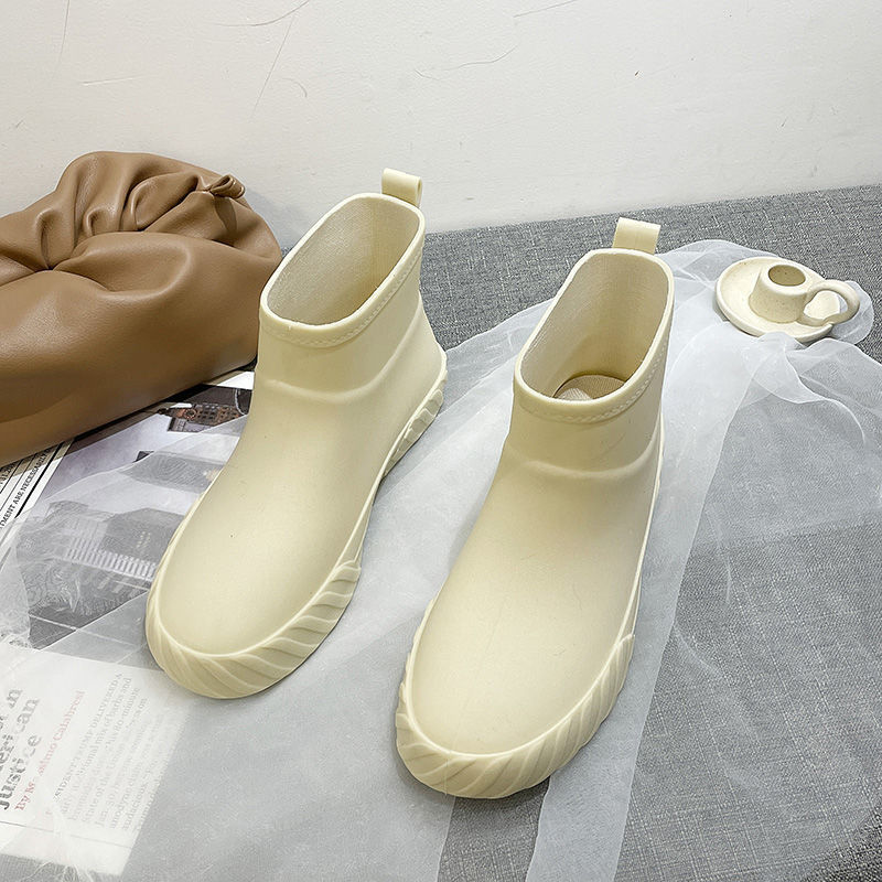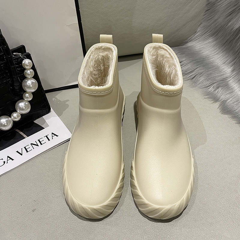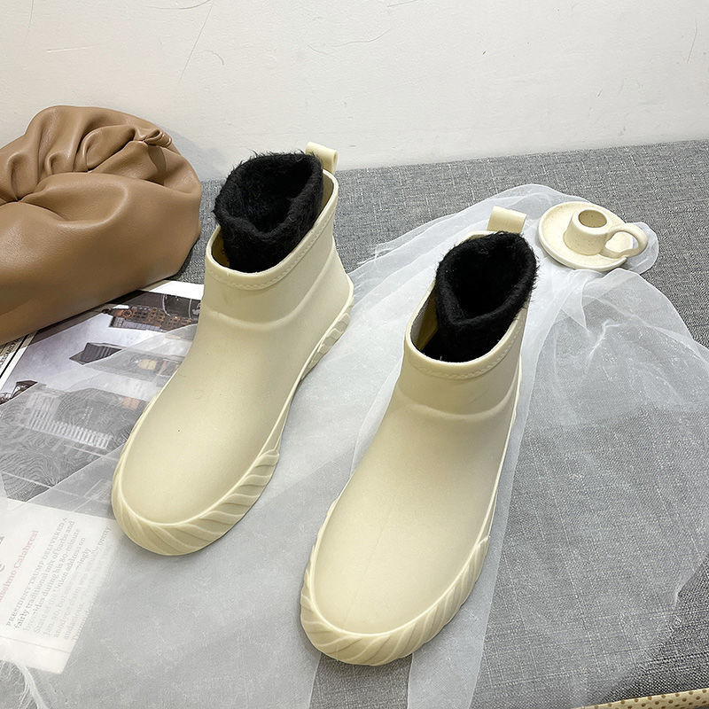 새로운 일본 스타일 짧은 장화 여성의 대외 무역 패션 기모 장화 주방 작업 미끄럼 방지 방수 신발 부드러운 단독 고무 신발