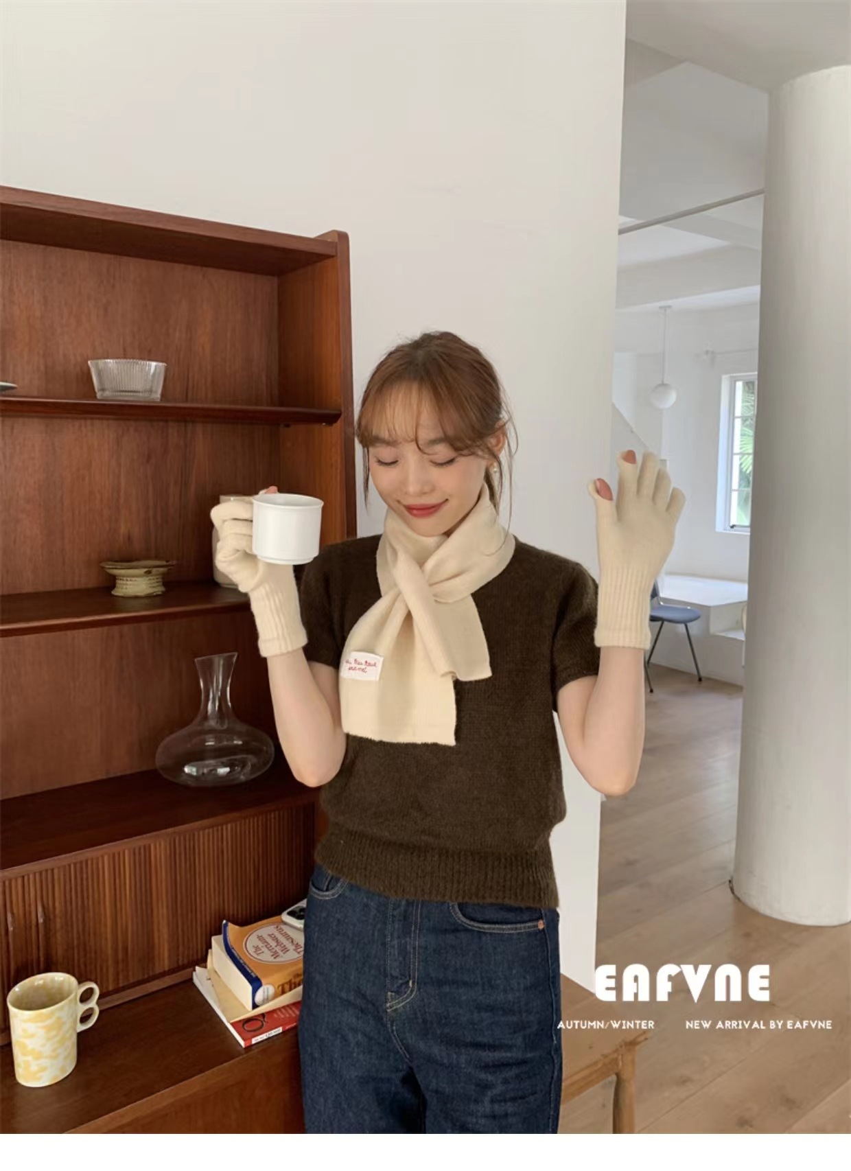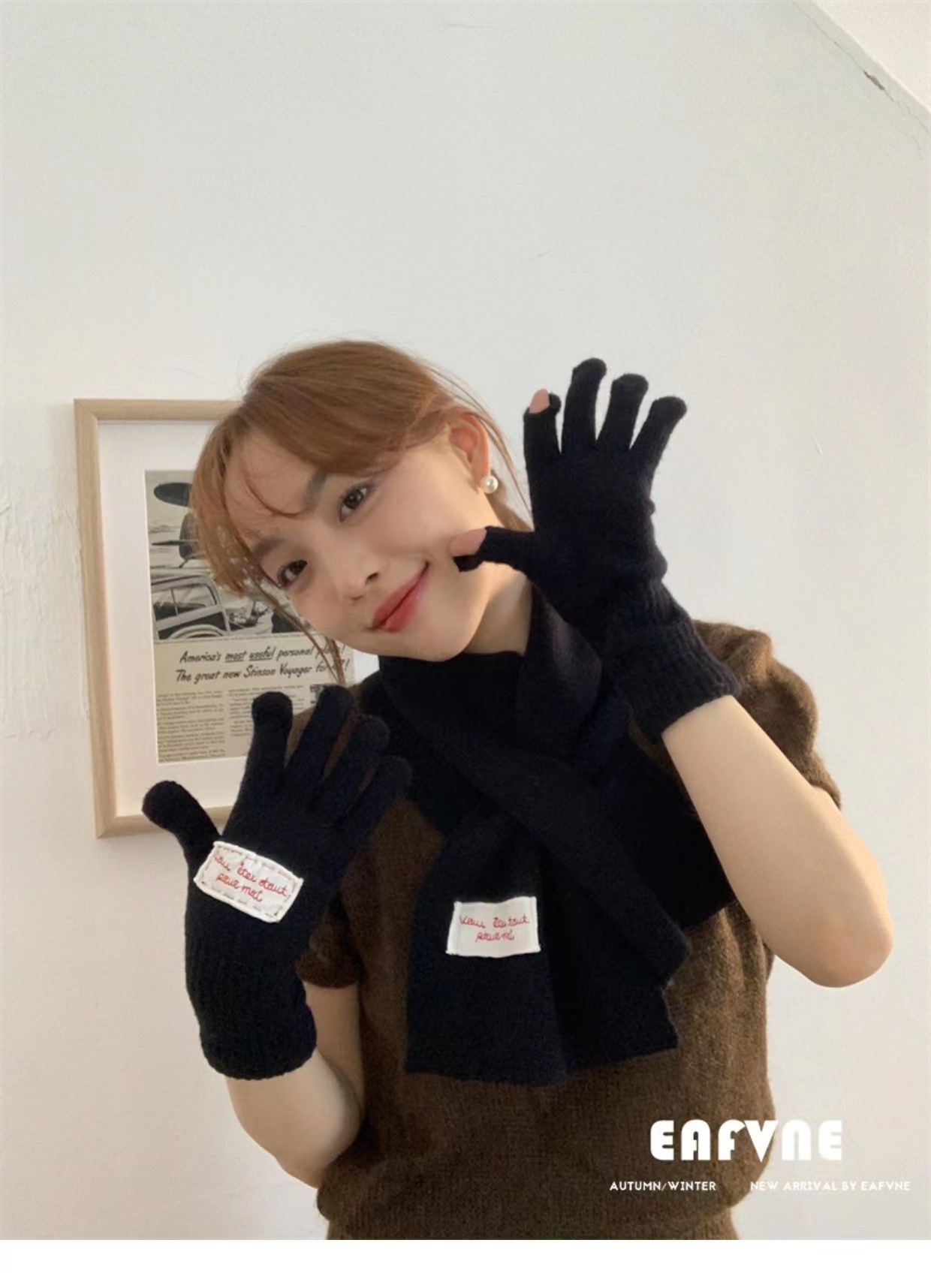 스타일 일본 편지 손가락 터치 스크린 따뜻한 니트 장갑 단색 손가락 누출 양모 가을과 겨울 여성의 두꺼운 사이클링 장갑