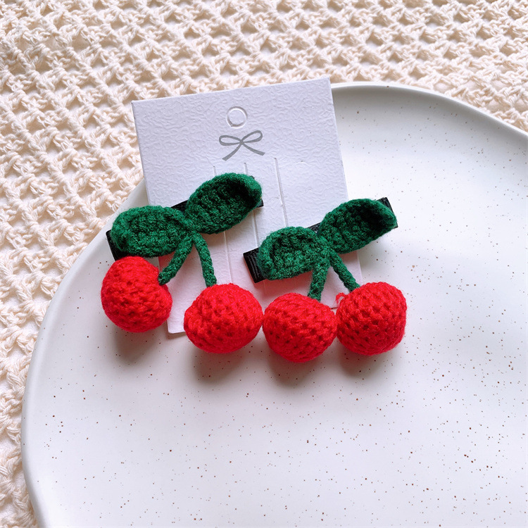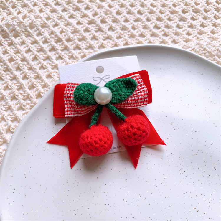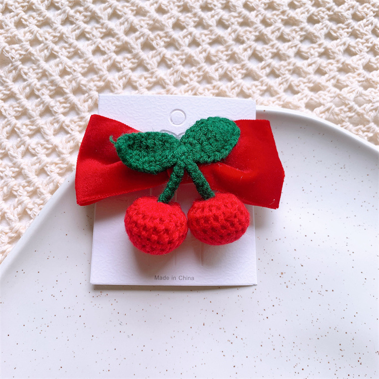 빨간 니트 체리 보우 헤어 액세서리 어린이 모자 소녀 아기 소녀를위한 귀여운 과일 헤어 밴드 사이드 클립