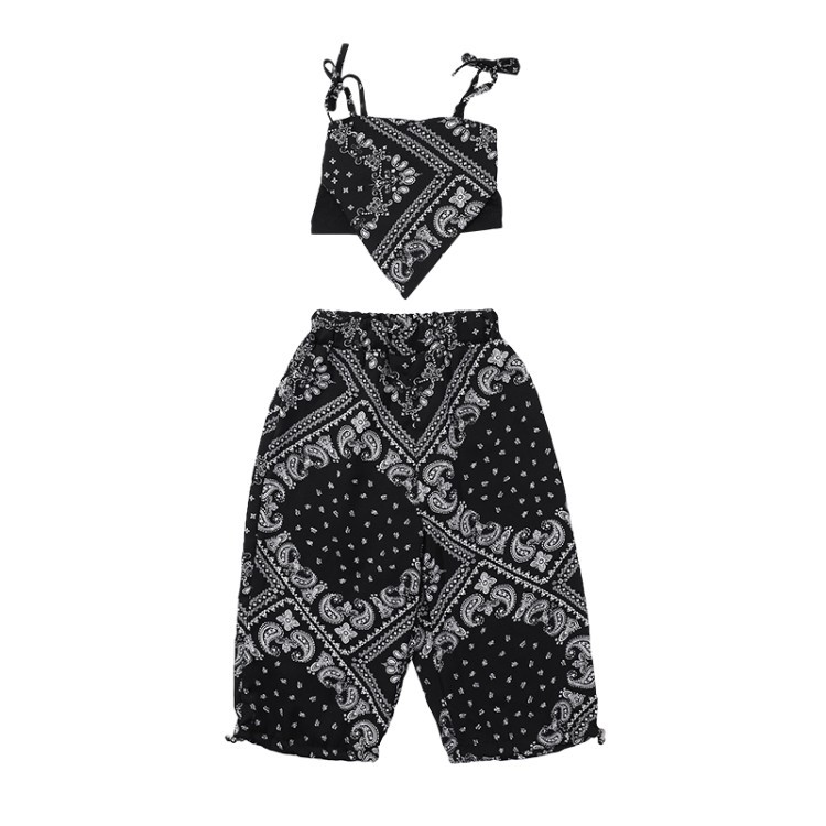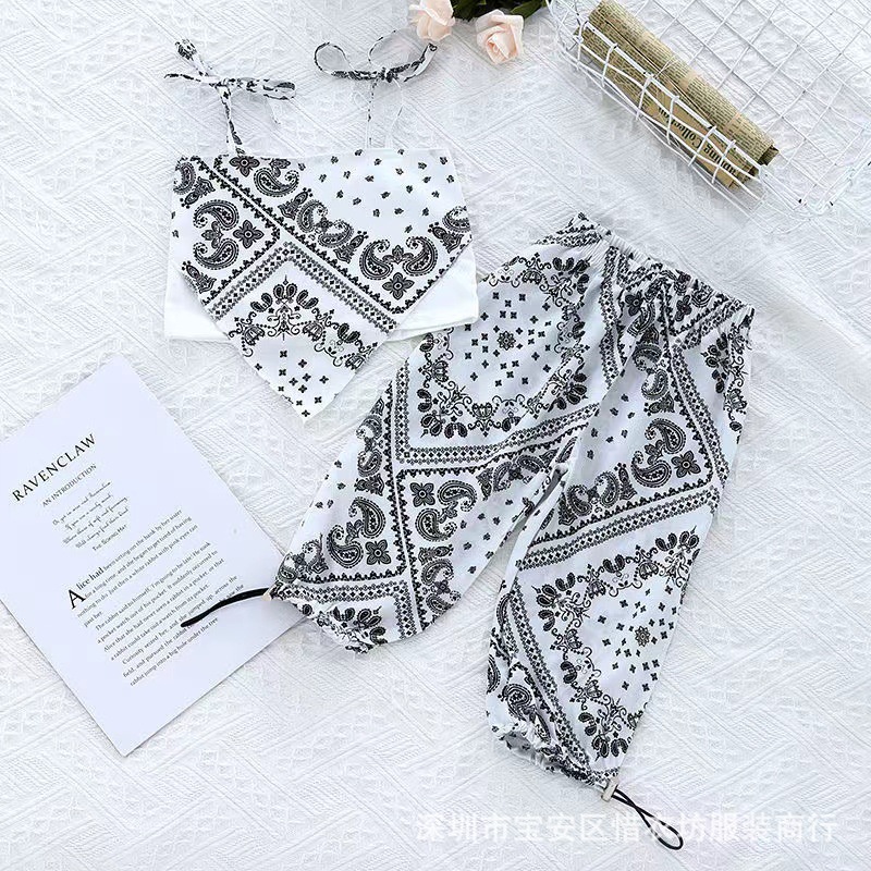 Qingkai 아동복 소녀 여름 정장 얇은 여성 아기 여름 슬링 모기 방지 바지 2 피스 아동복 조수