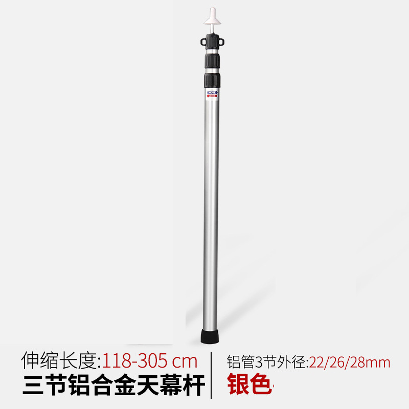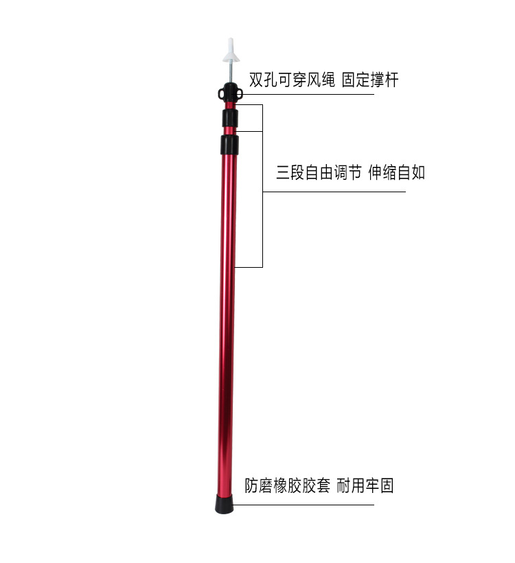 结构:2.3米可伸缩长度短1.18米~长3.05米,头部双孔可穿风绳起固定作用。