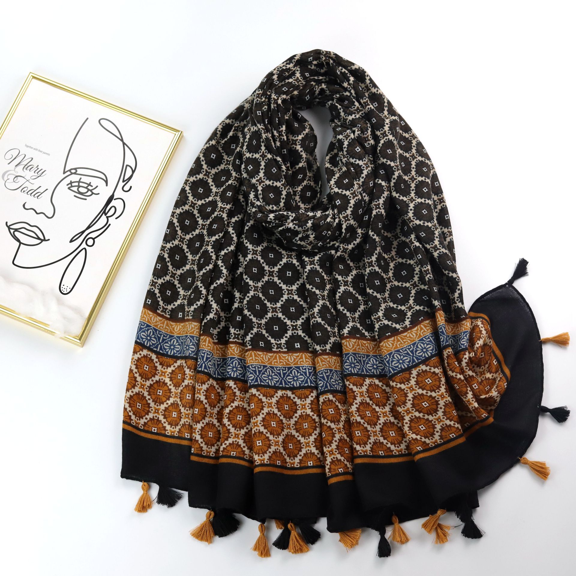 공장 판매 국경 간 라이브 방송 휠 꽃 술 롱 스카프 새틴 코튼 여성 가을과 겨울 스카프 따뜻한 선 스크린 숄