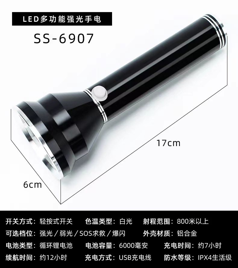 알루미늄 합금 손전등 USB 충전식 강한 빛 손전등 작은 미니 손전등 야외 조명 깜박임스토어 가기