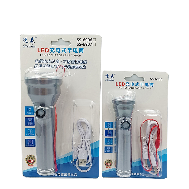 알루미늄 합금 손전등 USB 충전식 강한 빛 손전등 작은 미니 손전등 야외 조명 깜박임