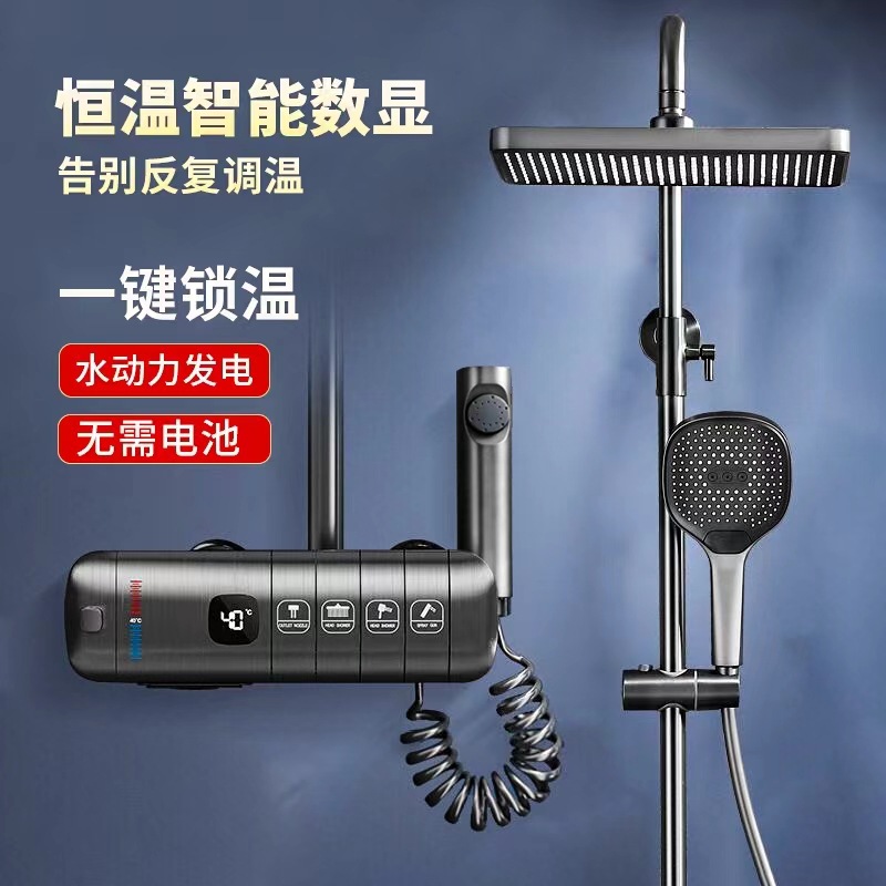 건 그레이 디지털 디스플레이 일정 온도 샤워 세트 수력 지능형 온도 제어 대형 패널 피아노 키 샤워