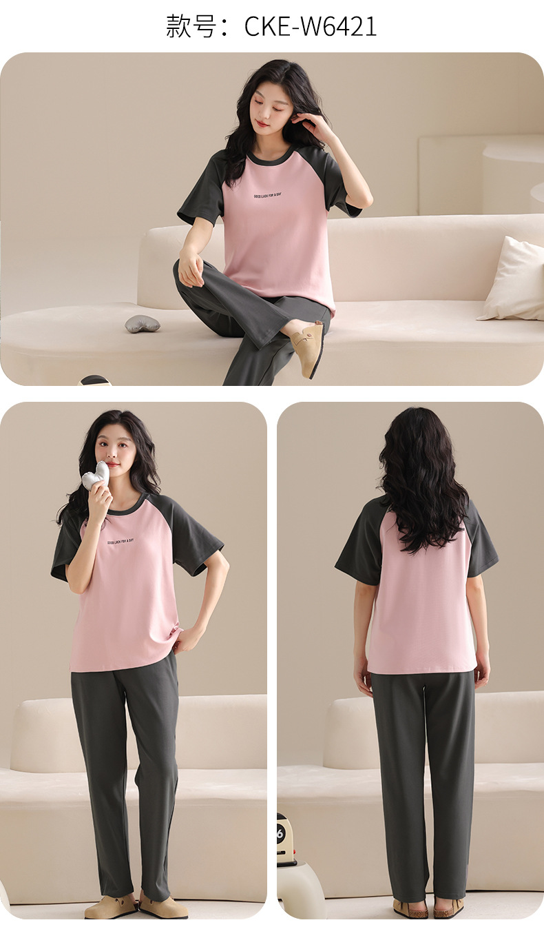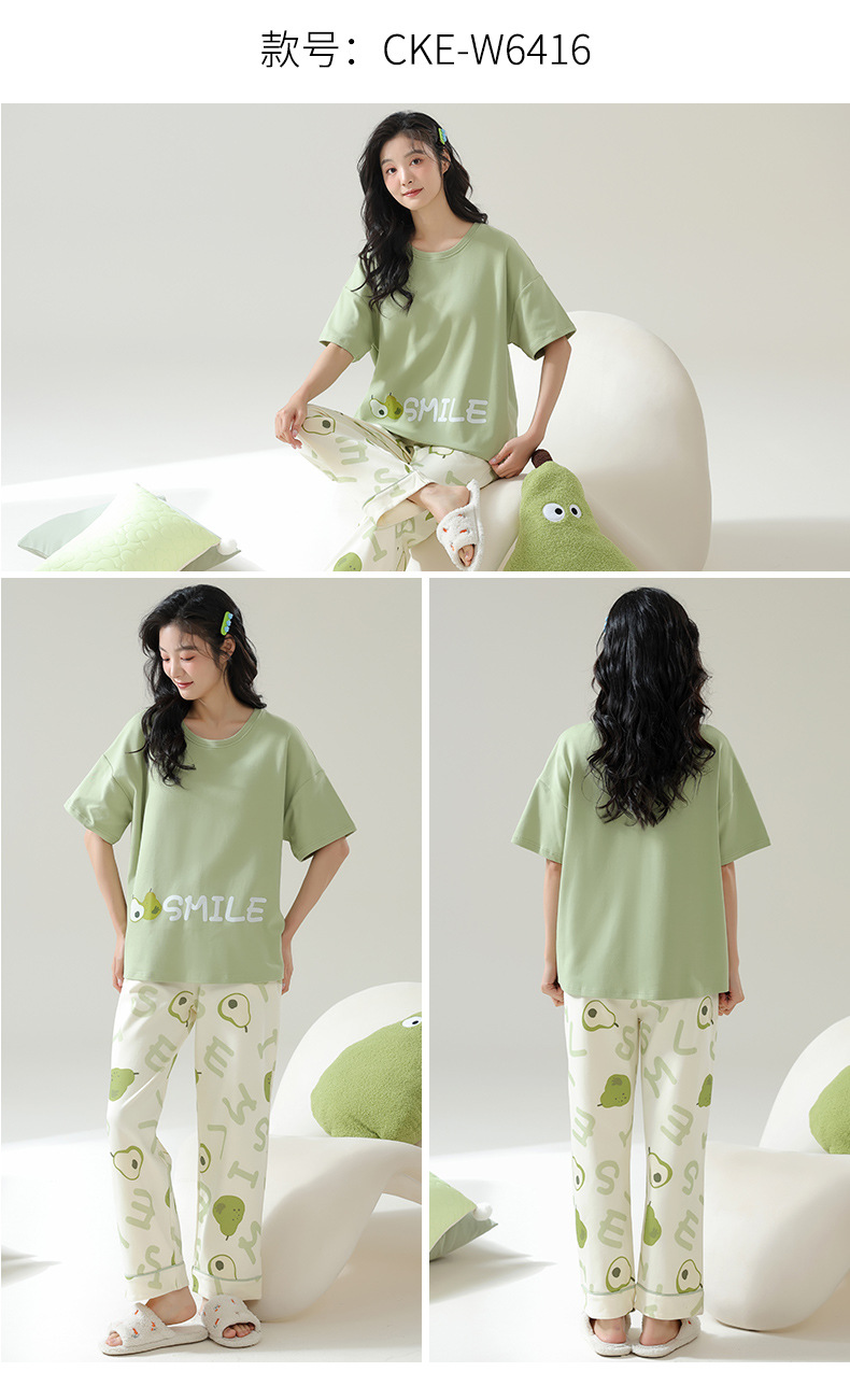 [순면] 잠옷 여성 여름 반소매 바지 얇은 여성 수분 흡수 통기성 아웃웨어 홈 의류 여성 세트스토어 가기