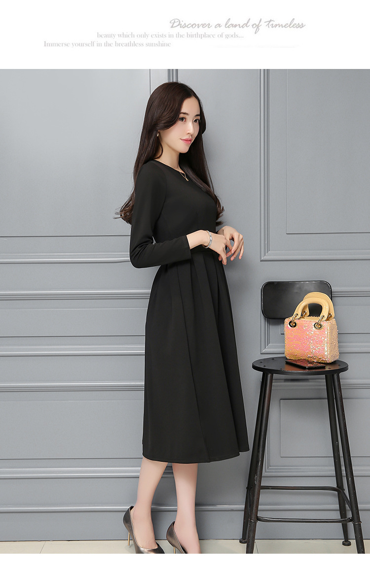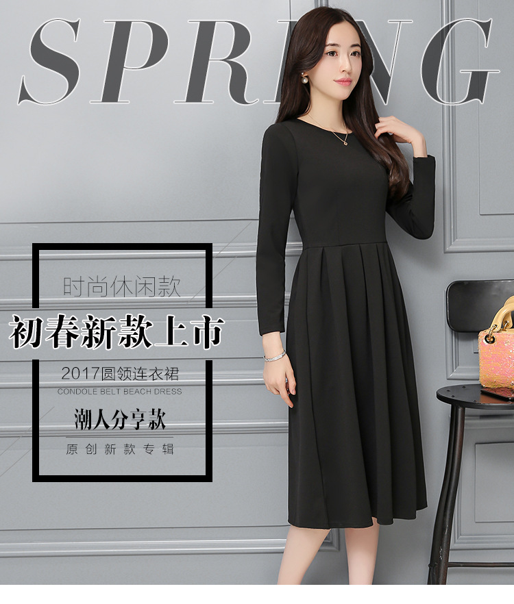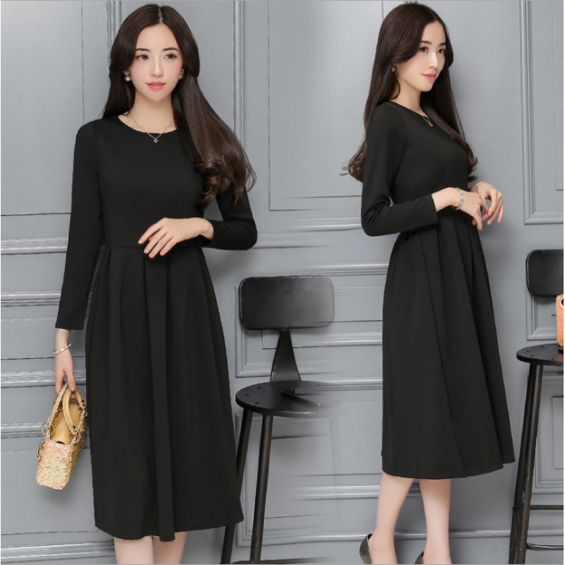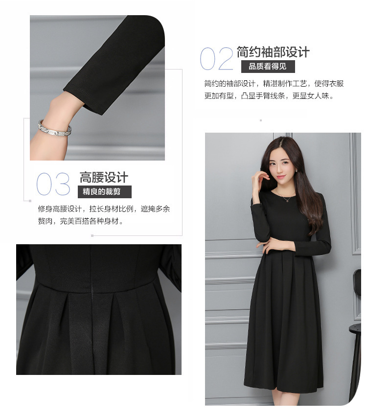 프랑스 스타일 복고풍 햅번 2022 봄과 가을 새로운 긴 소매 원피스 여자의 블랙 긴 슬림 하이 웨이스트 원피스스토어 가기