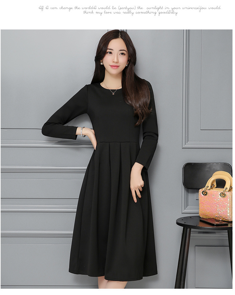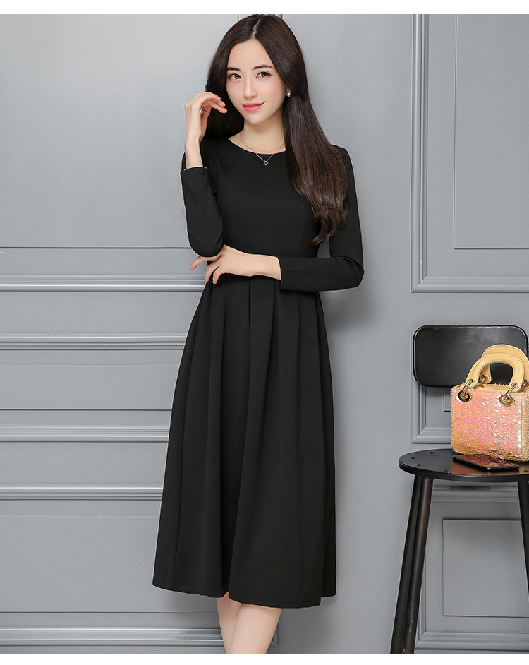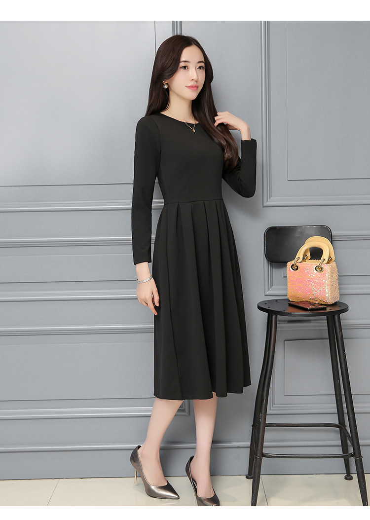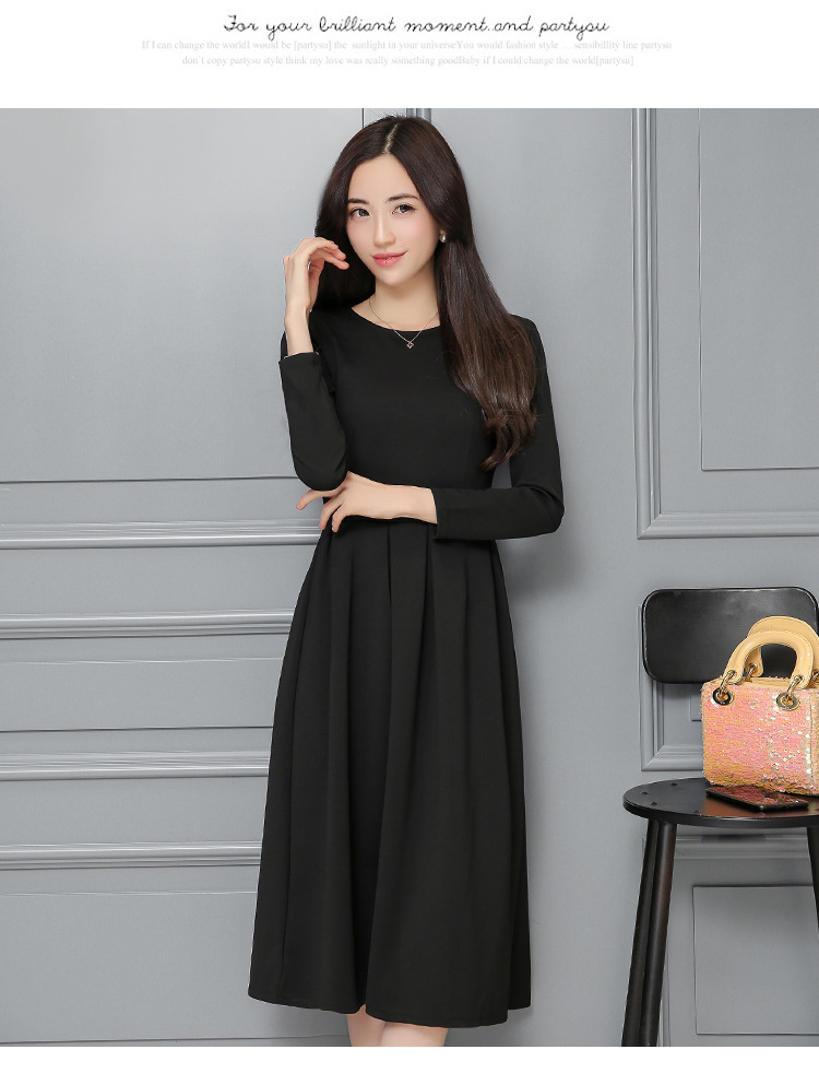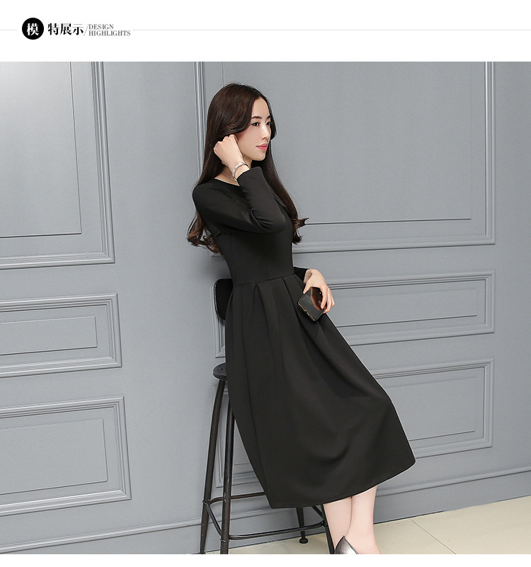 프랑스 스타일 복고풍 햅번 2022 봄과 가을 새로운 긴 소매 원피스 여자의 블랙 긴 슬림 하이 웨이스트 원피스