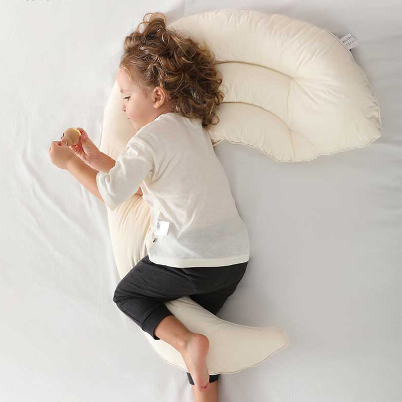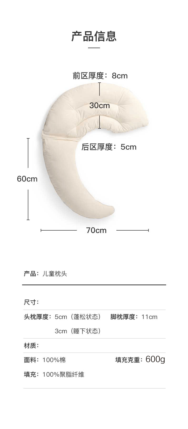 어린이 수면 베개, 달 모양의 부드러운 긴 베개, 세탁 가능하고 통기성이 있는 유아용 A급 항균 부드러운 유기농 면