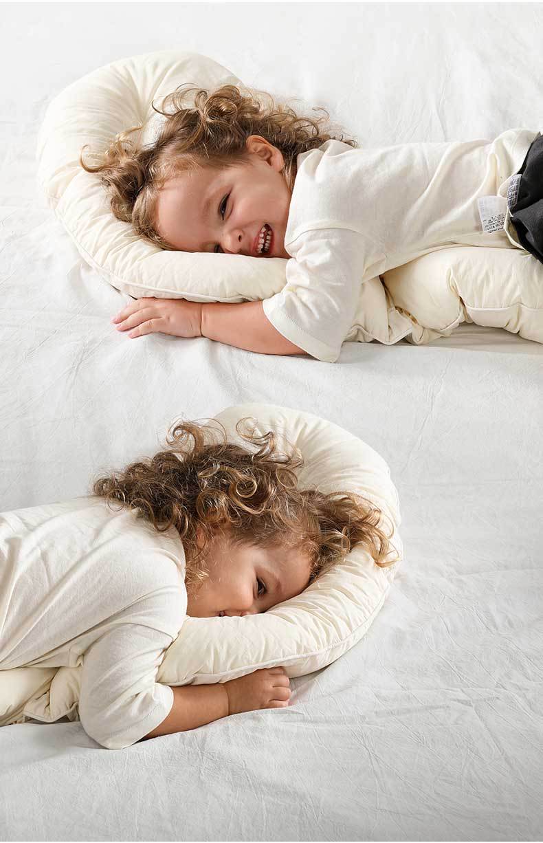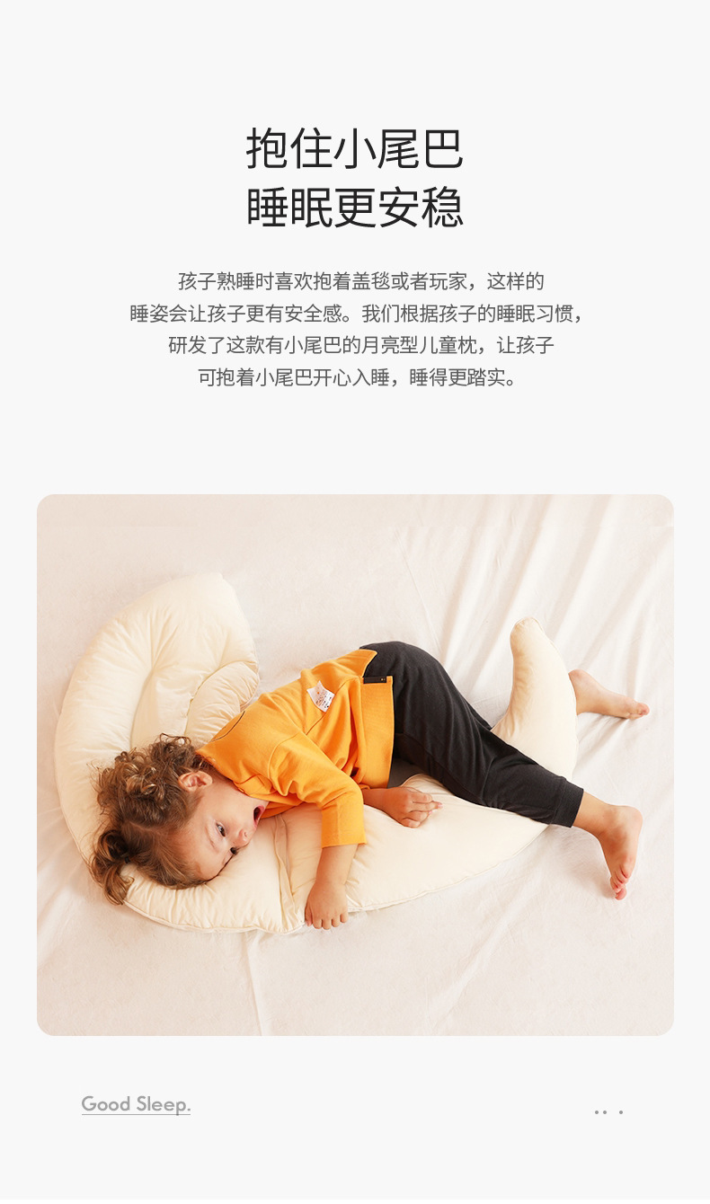 어린이 수면 베개, 달 모양의 부드러운 긴 베개, 세탁 가능하고 통기성이 있는 유아용 A급 항균 부드러운 유기농 면스토어 가기