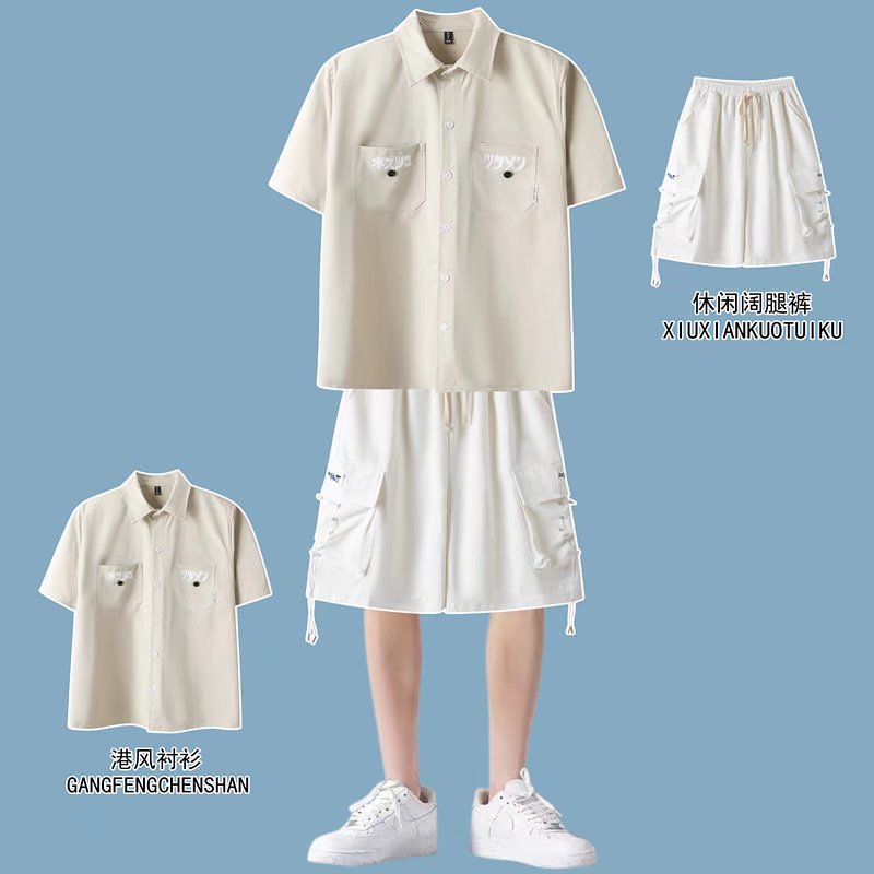 2022 여름 티셔츠 세트 남성 패션 브랜드 캐주얼 셔츠 반바지 헤어 세대의 세트와 패션 남성의 투피스 세트스토어 가기