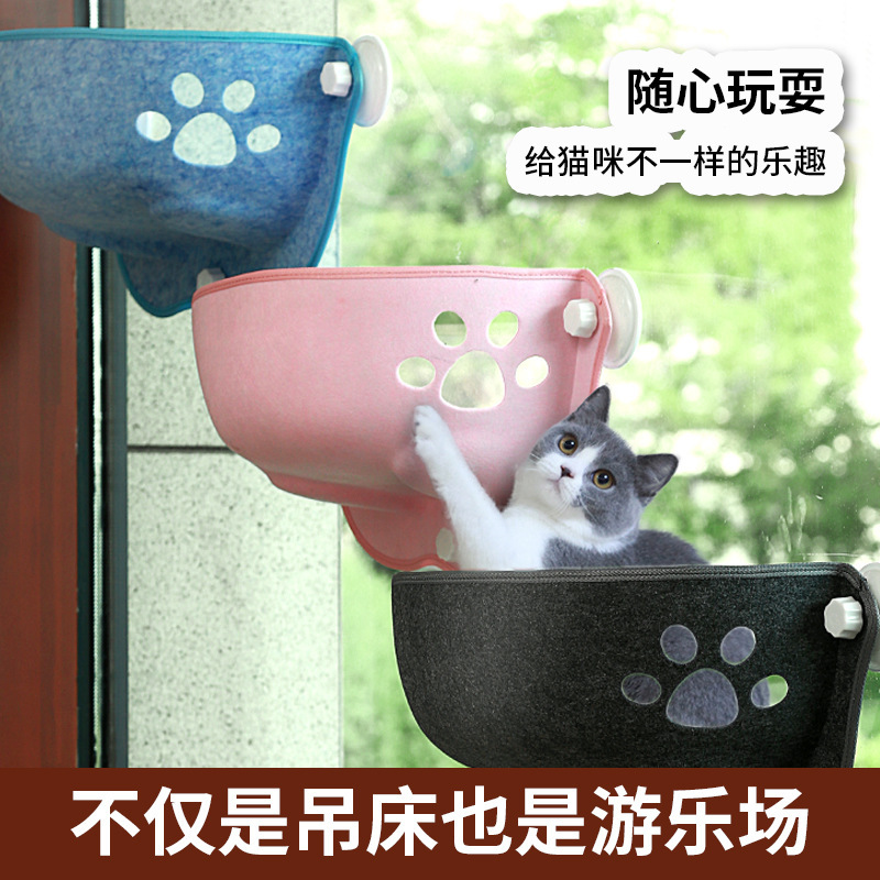 고양이 해먹 유리 초승달 흡착판 펠트 고양이 집 분리 세척 가능 흡착판 태양욕 고양이 발코니 애완동물 고양이스토어 가기