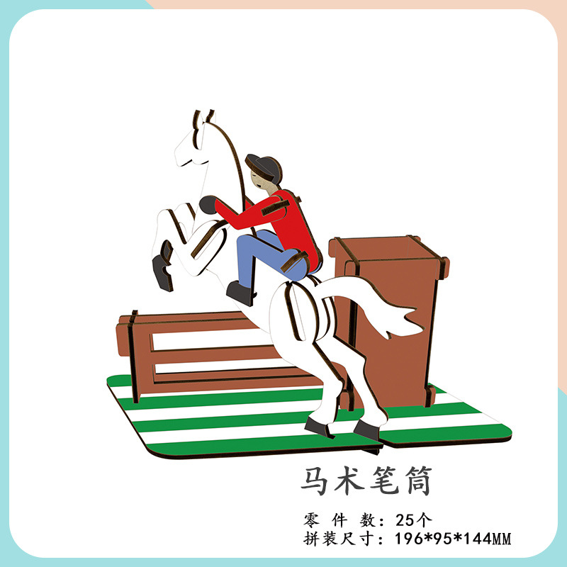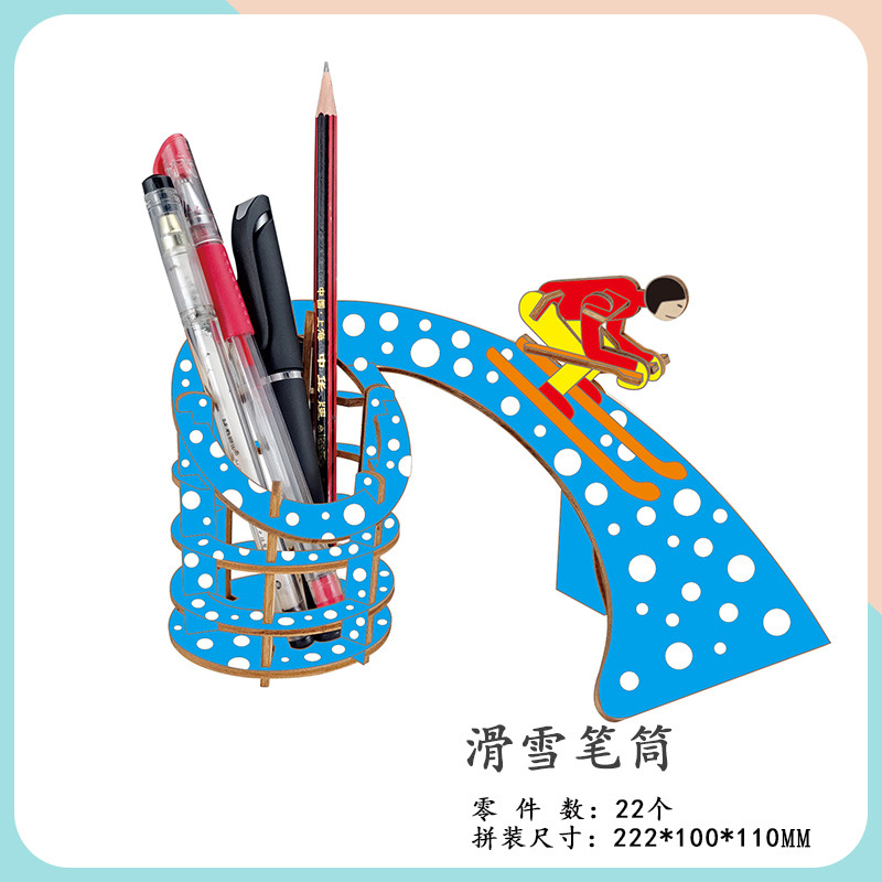 나무 3D 입체 직소 퍼즐 초등학생 탁상용 펜 용기 장식품 손 조립 모델 교육 완구 실속 사업