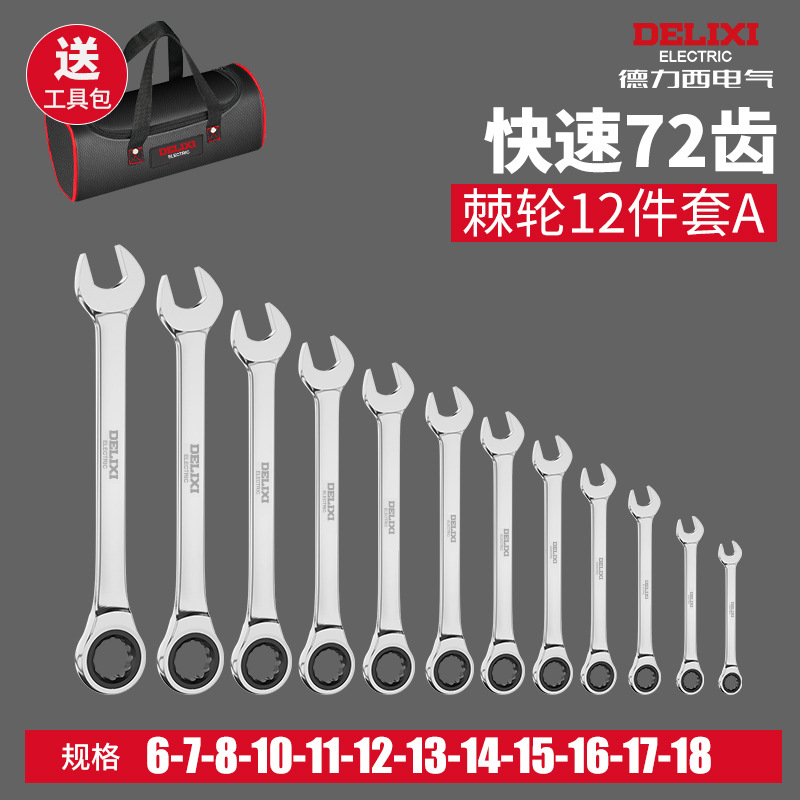 • Delixi 이중 목적 래칫 12 피스 세트 A [키트 + 장갑 보내기]
