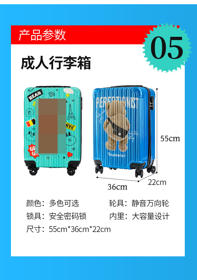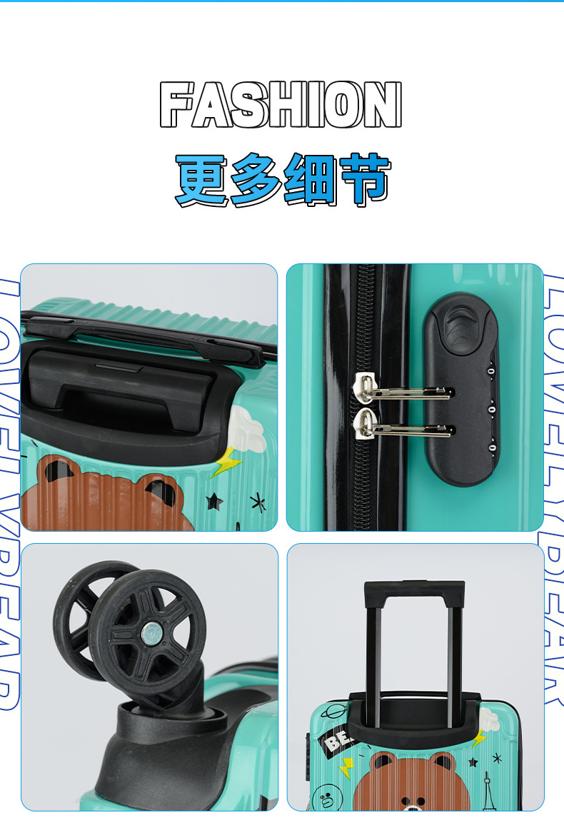 새로운 어린이용 트롤리 캐리어, 귀여운 만화 곰돌이 무늬 여행 가방, 도매, 회전 바퀴, 기내 반입 가능 여행 가방