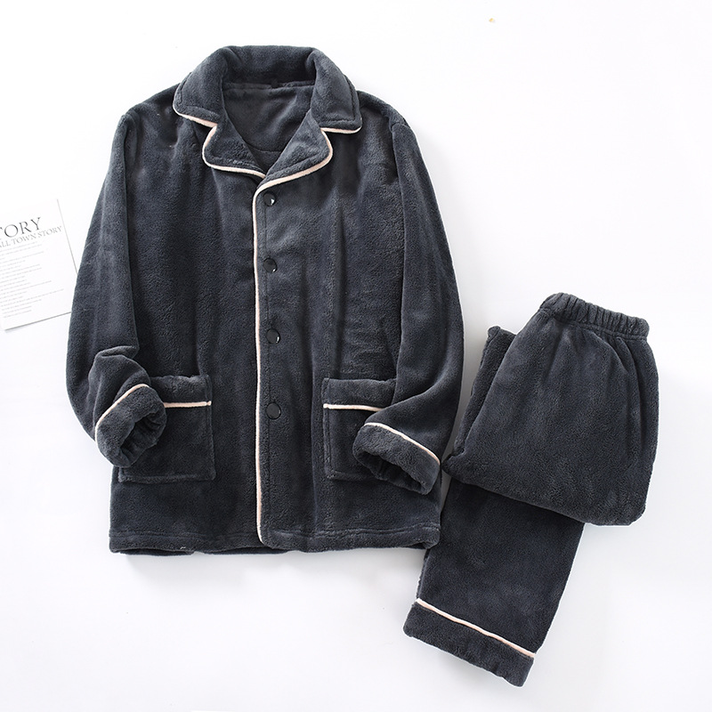 산호 양털 잠옷 남성 가을과 겨울 커플의 두꺼운 따뜻한 가정복 플러스 사이즈 플란넬 긴팔 세트 여성