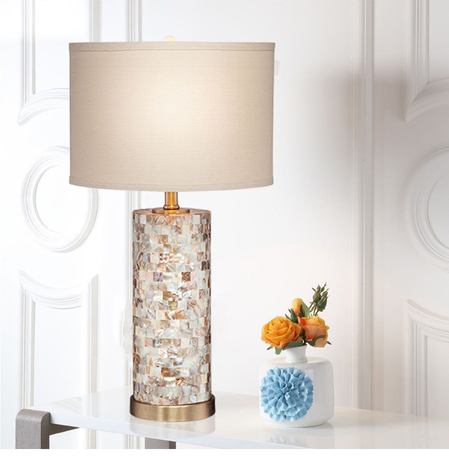 북유럽 쉘 테이블 램프 침실 침대 옆 간단한 현대 창조적 인 거실 연구 원격 제어 디 밍이 가능한 빛 럭셔리 LED 램프스토어 가기
