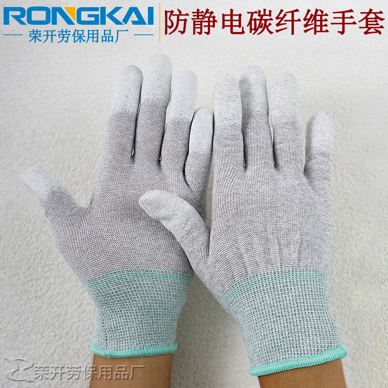 탄소 섬유 핑거 코팅 장갑 Pu 코팅 정전기 방지 소프트 미끄럼 방지 내마모성 나일론 노동 보호 작업 장갑 도매